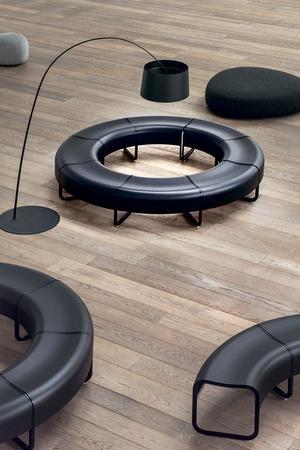 Im Japanischen ist „za“ ein geschützter Ort, an dem Menschen zusammenkommen. Früher waren das oft die Klöster der Mönche. Diese Tradition der Gastfreundschaft diente Shin & Tomoko Azumi als Inspiration für ein elegantes Sitzmöbelsystem, das ideal für Warteräume, Museen und Shops geeignet ist. Das System basiert auf einzelnen Modulen, die flexibel kombinierbar sind und durch Abwechslung von geraden und gebogenen Elementen eine besondere gestalterische Vielfalt bieten. Die einzelnen Teile werden durch ein Metallband verbunden, das die zeitlose Verbindung zwischen Menschen symbolisiert.