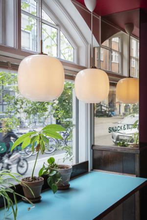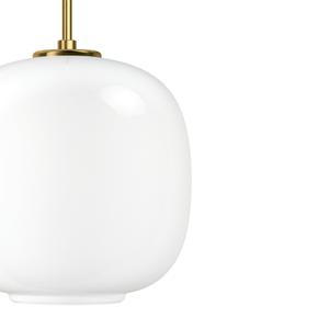 Die VL 45 Radiohus Pendelleuchte ist schlicht schön. Mundgeblasenes Opalglas verbreitet ein bezauberndes Licht, das Pendelrohr ist aus Messing. Zwei Größen nebeneinander positioniert oder einzeln lassen die Leuchte gut zur Wirkung kommen.