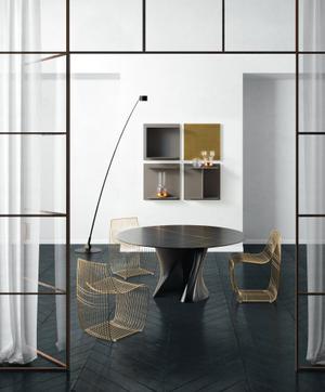 Filigran und voluminös zugleich – Stuhl Sign Filo besteht aus insgesamt 45 Metern Stahldraht. Nicht nur seine Struktur ist einzigartig, auch die in seiner Oberfläche entstehenden Lichtreflexe machen ihn zu einem kunstvollen Designobjekt.