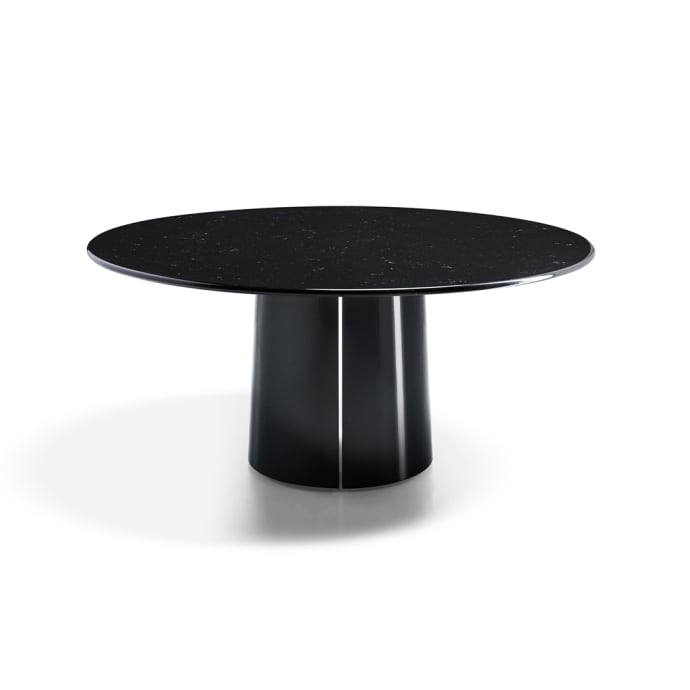 Der Tisch Mateo von Vincent Van Duysen setzt 2024 neue Maßstäbe im Design. Mit seinem markanten zentralen Sockel, der durch eine zylindrische und konische Form besticht und an der Basis mit vertikalen Rillen verziert ist, wird der Tisch zu einem echten Blickfang.