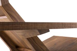 Die markante Silhouette und die asymmetrische Armlehne aus Holz machen den Lounger zu einem besonderen Objekt. Die erste Liege fertigte van Lieshout ohne Skizzen, rein intuitiv.