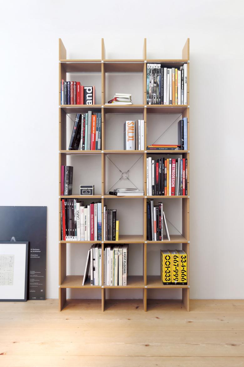 Als reine Struktur ist das Regal reduziert auf Wangen und Böden, die im Verbund mit den eingesteckten Aluminium-Schienen die Transparenz des Entwurfs in den Vordergrund stellen. FNP ist nachträglich erweiterbar und ohne Werkzeug aufzubauen.