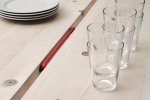 Tisch Kampenwand ist sowohl für den In- als auch für den Outdoor-Bereich geeignet. Der Witterung ausgesetzt entwickelt das unbehandelte Tannenholz eine einzigartige Patina, die jedes der Möbel zu einem Unikat werden lässt. Im Wohn- oder Esszimmer sorgt der Tisch für eine sportliche Note und überzeugt mit einem Touch Signalfarbe. Passend zum Tisch ist auch eine Bank mit oder ohne Rückenlehne bestellbar.