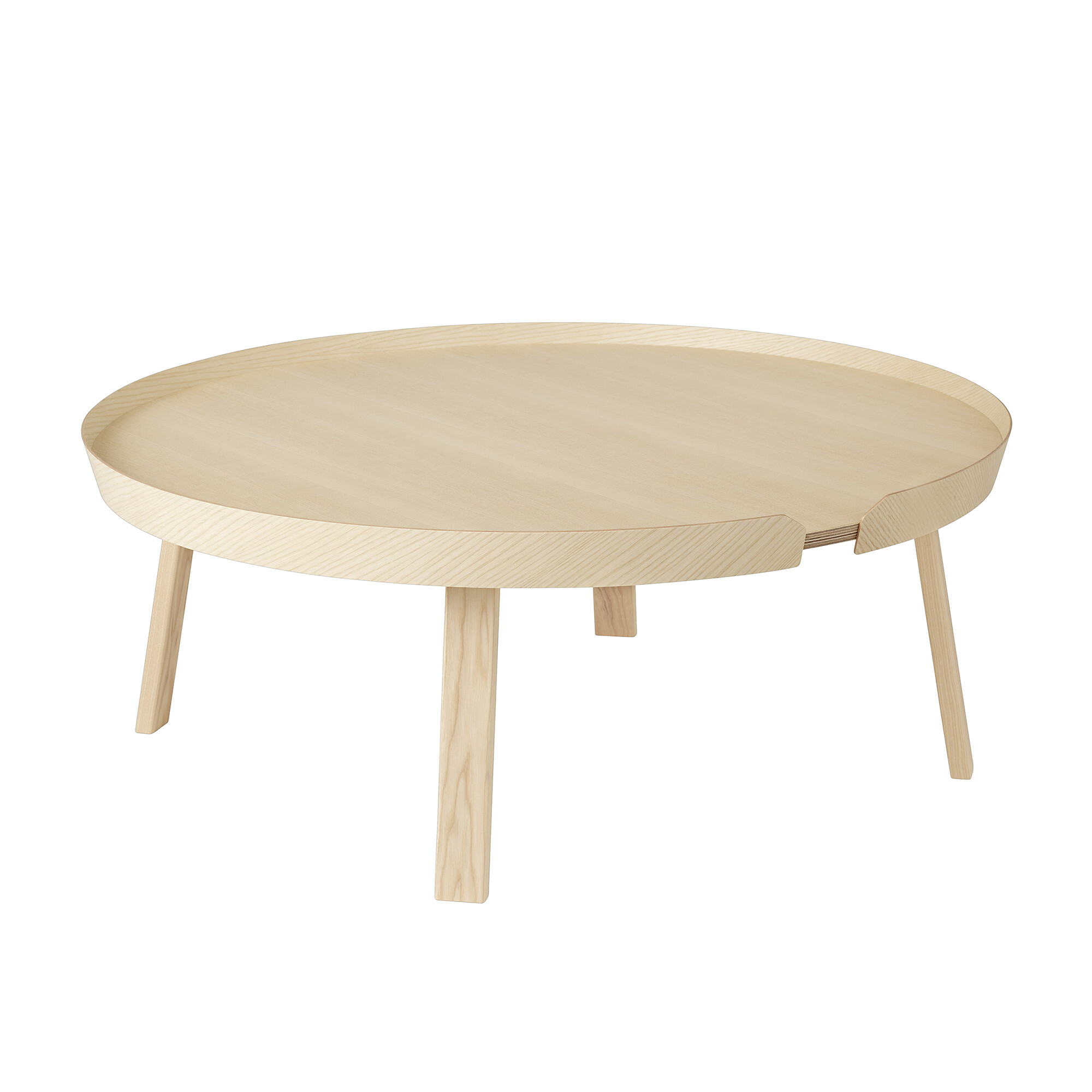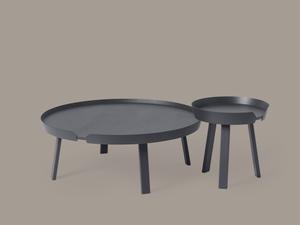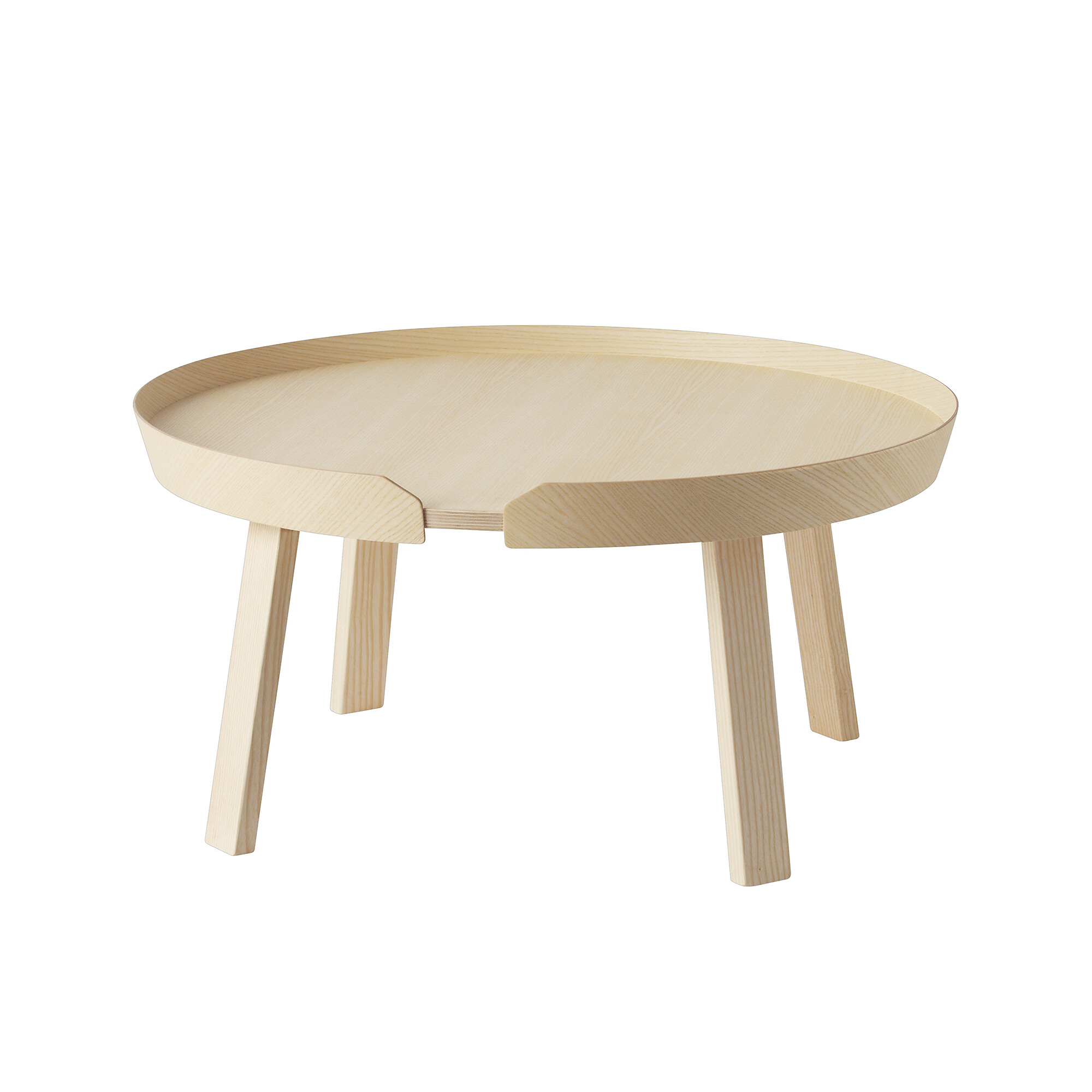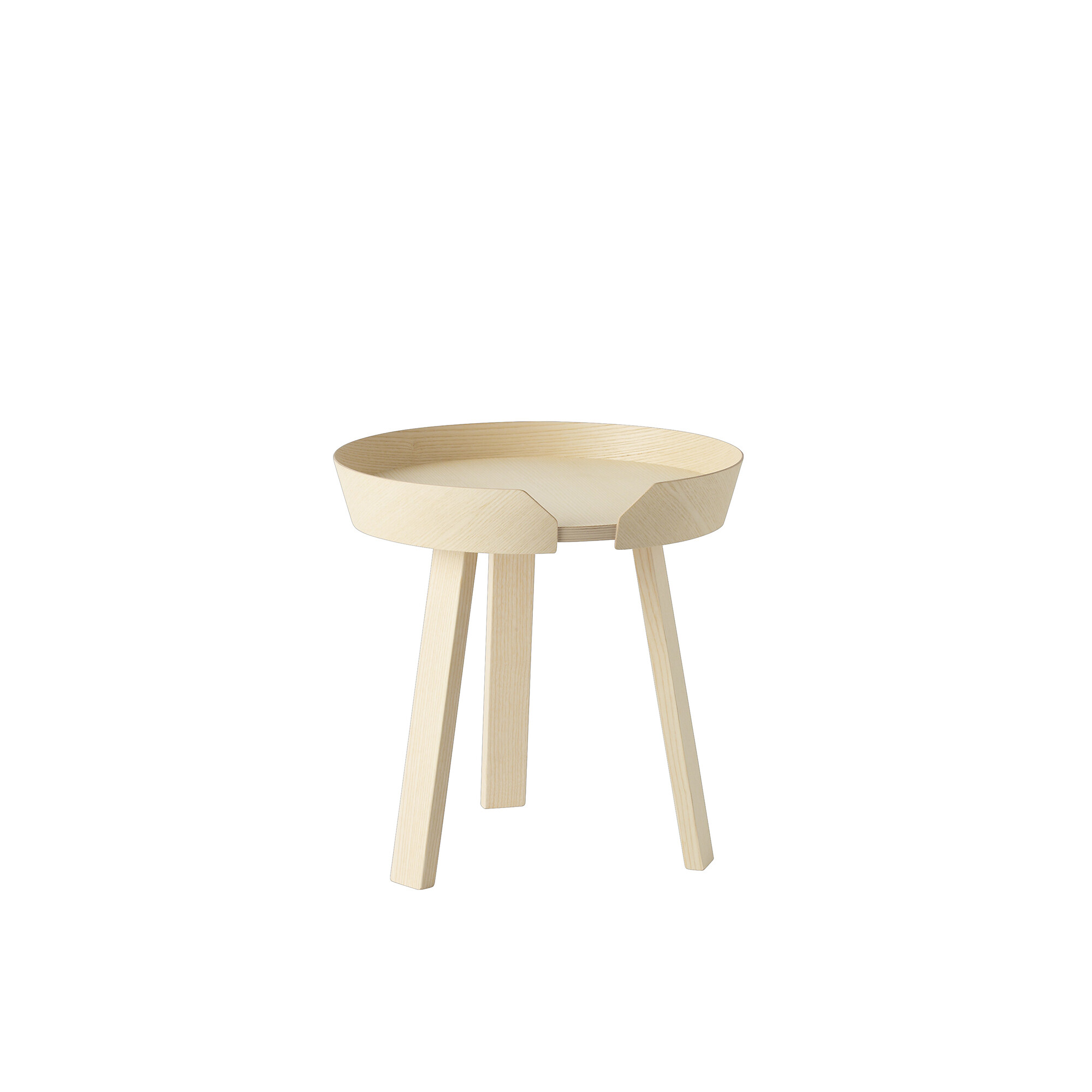 Die Tischserie Around ist in drei Größen und diversen Farbausführungen erhältlich. Die Reinigung des Tisches kann mit einem feuchten Tuch erfolgen. Falls nötig, kann ein mildes Spülmittel verwendet werden. Immer mit einem trockenen Tuch nachwischen.
