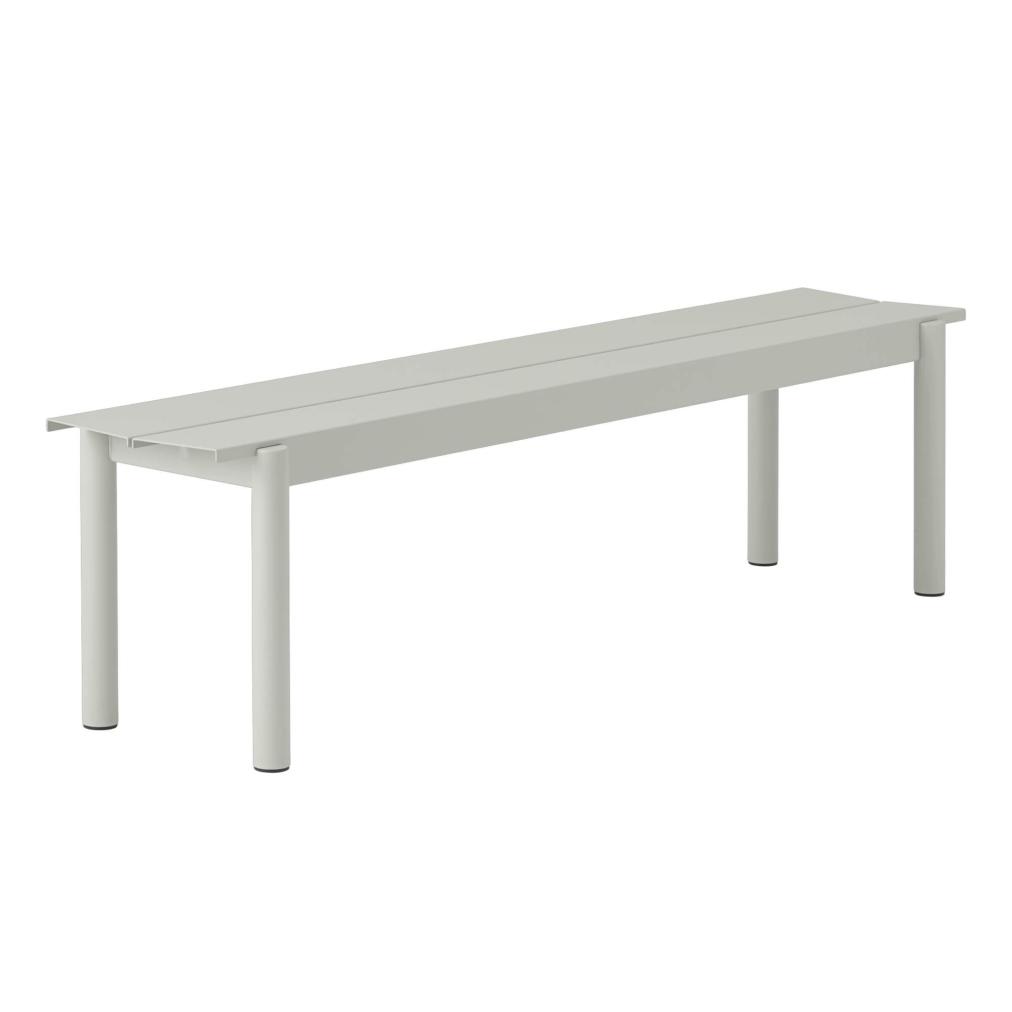 Die Bänke Linear Steel sind in den Dimensionen so gestaltet, dass sie platzsparend unter den passenden Linear Steel Tisch geschoben werden können, wenn sie nicht gebraucht werden. Aber auch solo sind sie charmante Begleiter für Drinnen und Draußen.