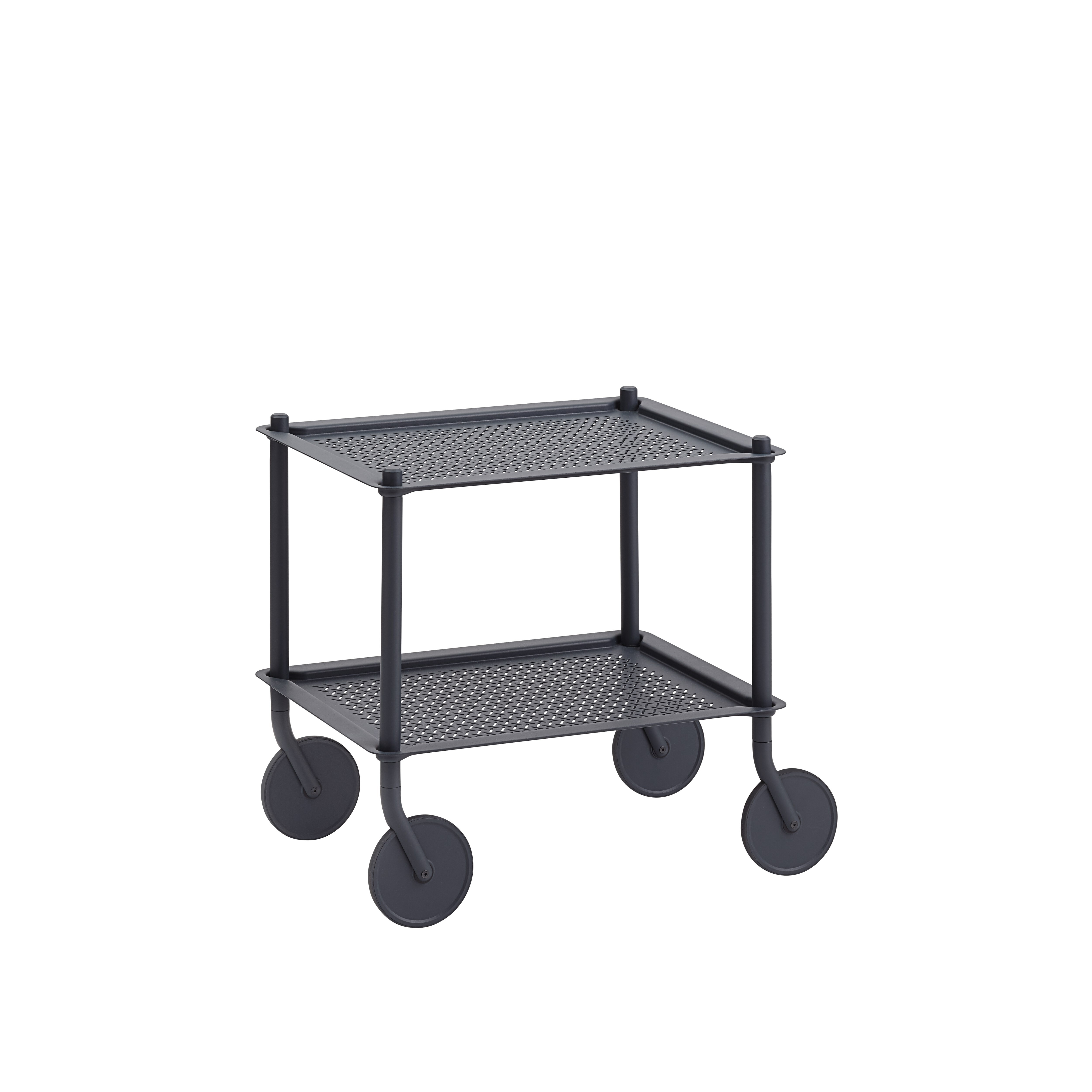Der Flow Trolley vereint funktionales Design und Anmut. Die gerillten Schalen und das monochrome Erscheinungsbild werden durch die auffallend schlichten Rollen ergänzt, die den Flow Trolley unkompliziert in jeden Raum bewegen.