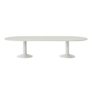Der Midst Table von Muuto, entworfen vom Stockholmer Studio Taf, bringt skandinavische Zurückhaltung mit einer skulpturalen Formensprache zusammen. Während der Tisch in den kleineren Varianten mit einer einzelnen Säule auskommt, stützen die Konferenztischmodelle in den Größen 330 × 140 cm, 395 × 140 cm und 460 × 140 cm die großzügige Platte auf zwei konischen Basiselementen. So bleibt die elegante Silhouette gewahrt und die Stabilität auch bei großen Dimensionen gesichert.
