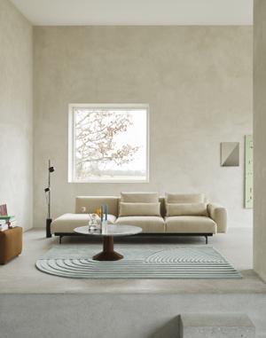 Besonders charakteristisch: die asymmetrische Form mit abgerundeter Ecke, die dem Design eine subtile Spannung verleiht. Ob im Wohnbereich, unter einem Sofa oder frei im Raum – Relevo zieht Blicke auf sich, bleibt dabei aber angenehm zurückhaltend.