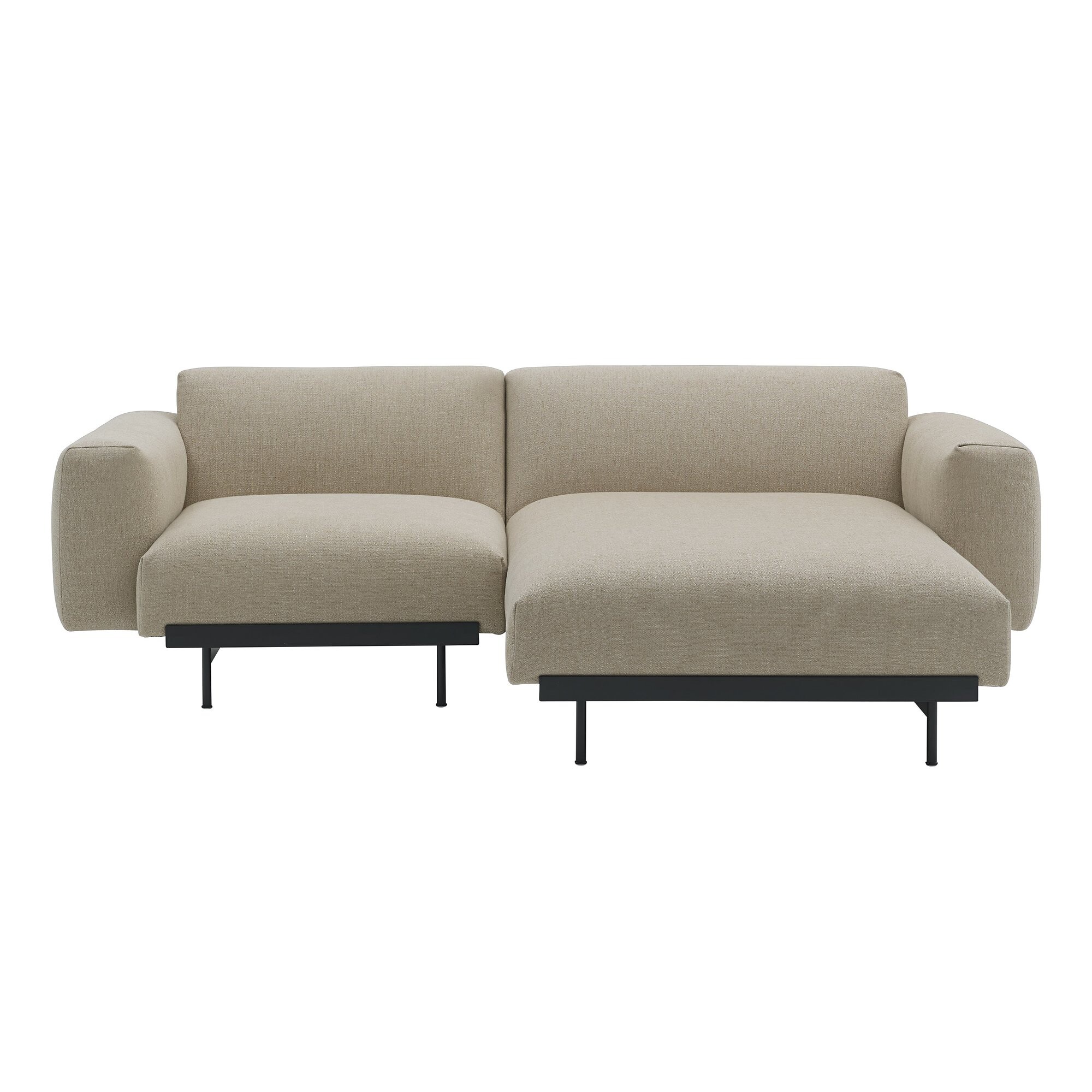 Die Gestaltung vereint eine solide Basis mit einer leichten Anmutung. Der schlanke Stahlrahmen verleiht Struktur, während die sichtbaren Befestigungsdetails bewusst Teil des Designs sind. Die üppige Polsterung sorgt für hohen Sitzkomfort und einen legeren Charakter, der zum Entspannen einlädt. Trotz seiner Größe wirkt das Sofa nie schwer, sondern fügt sich mit seiner klaren Formensprache dezent in unterschiedliche Umgebungen ein.