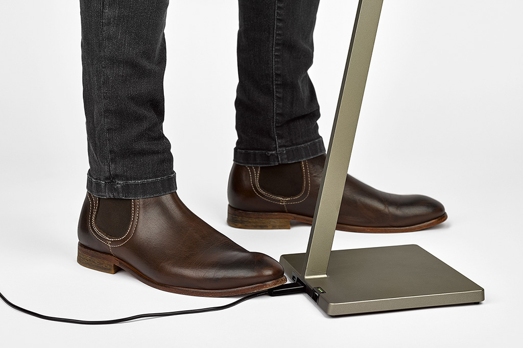 Sehr charmant ist der Ladevorgang bei der Roxxane Leggera CL gelöst worden: Um die Leuchte an das Stromnetz zu koppeln, genügt es, sie in Richtung des magnetischen Lade-Pucks zu bewegen. Ein gut hörbares „Klack“ signalisiert eindeutig, dass die Verbindung geglückt ist. Ebenso einfach wird Roxxane Leggera CL nach Beenden des Ladevorgangs vom Stromnetz getrennt. Ein leichtes Tippen mit der Fußspitze auf den Magnetic Dock und die Leuchte kann von der Ladestation abgehoben werden.
