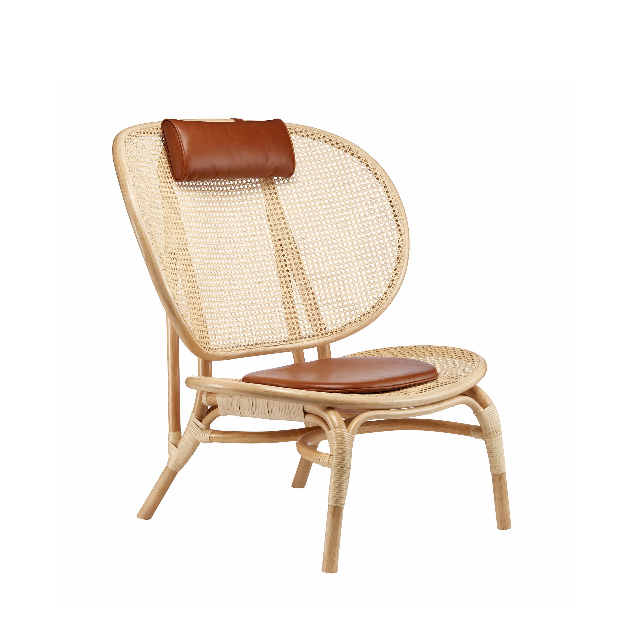 In enger Zusammenarbeit mit den Zulieferern wurden viele Experimente durchgeführt, um die großen Sitz- und Rückenrahmen der Nomad Sessels sowie das hintere Bein, das vom Boden bis zur Oberseite des Rückens in einem Stück verläuft, zu entwickeln. Zu dem Sessel gehört ein Nackenkissen für zusätzlichen Komfort.