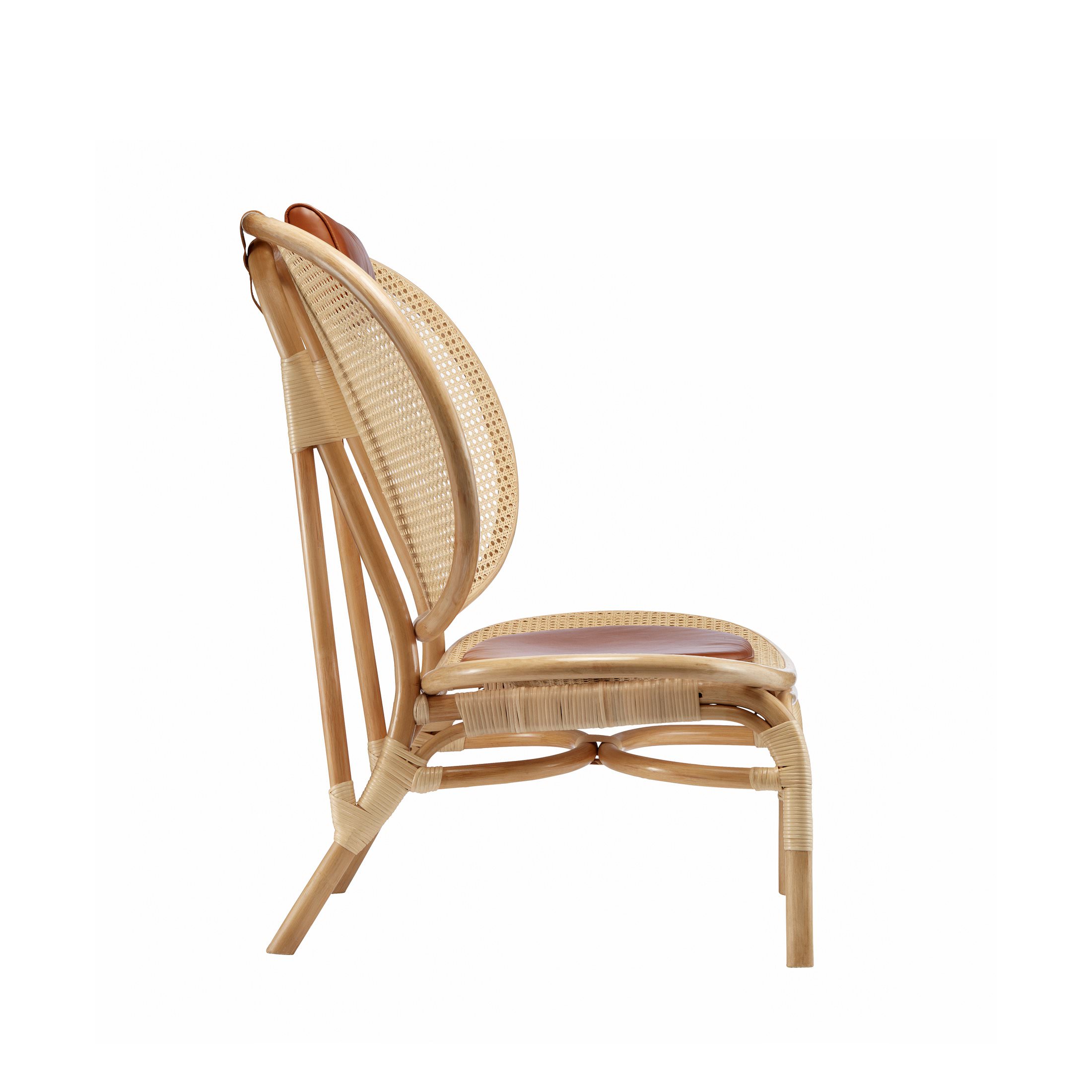 Nomad ist die Neuinterpretation des klassischen Korbsessels im Boho Stil. Sitz und Rücken bestehen aus zwei großen geformten Bambusrahmen mit eingelegtem Wiener Geflecht. Die semitransparente Flächen unterstreichen die extravagante Form.