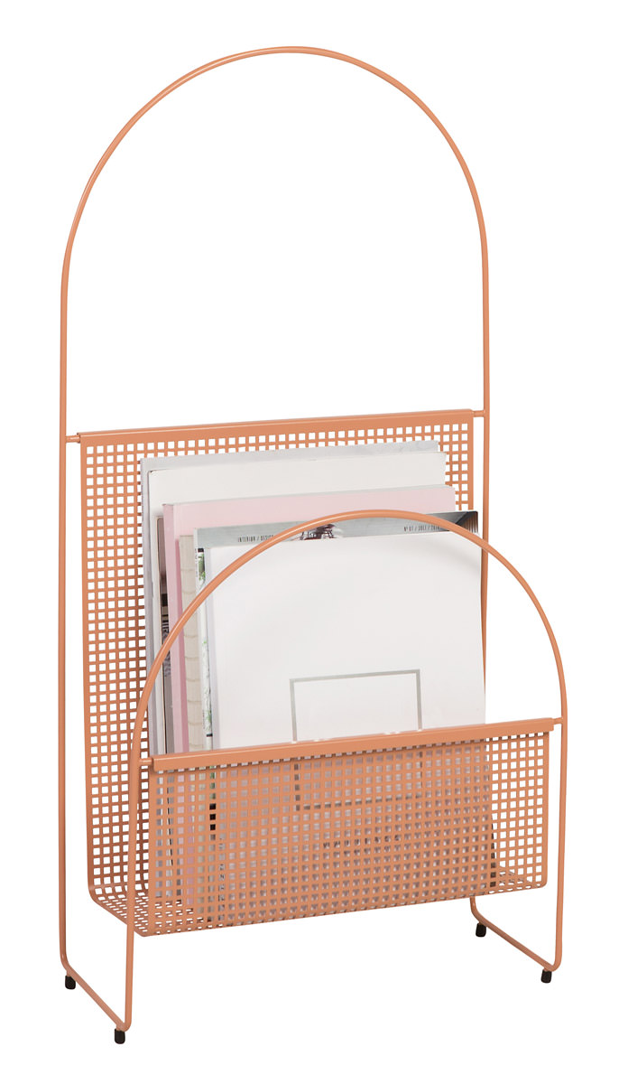 Den Magazinhalter von OK Design gibt es in den Farben schwarz, weiß und pfirsichfarben.