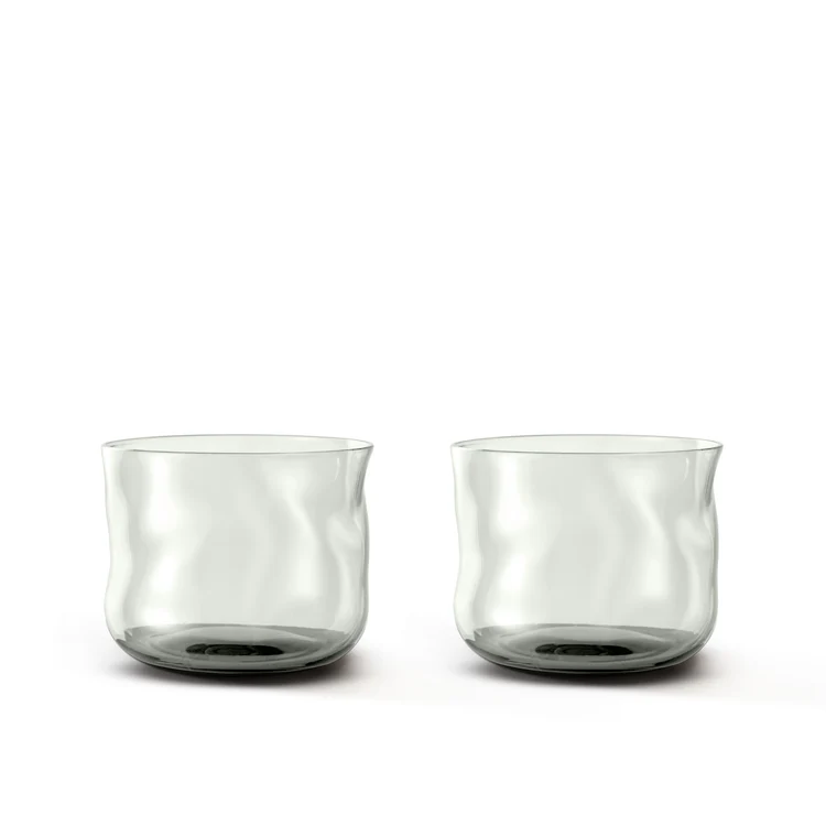 Diese Gläser sind für genussvolles Trinken konzipiert. Ihre weichen Rundungen liegen angenehm in der Hand und spiegeln die Bewegung des Wassers wider, wodurch jedes Glas sowohl funktional als auch optisch ansprechend ist. Servieren Sie es mit einem "Swirl".