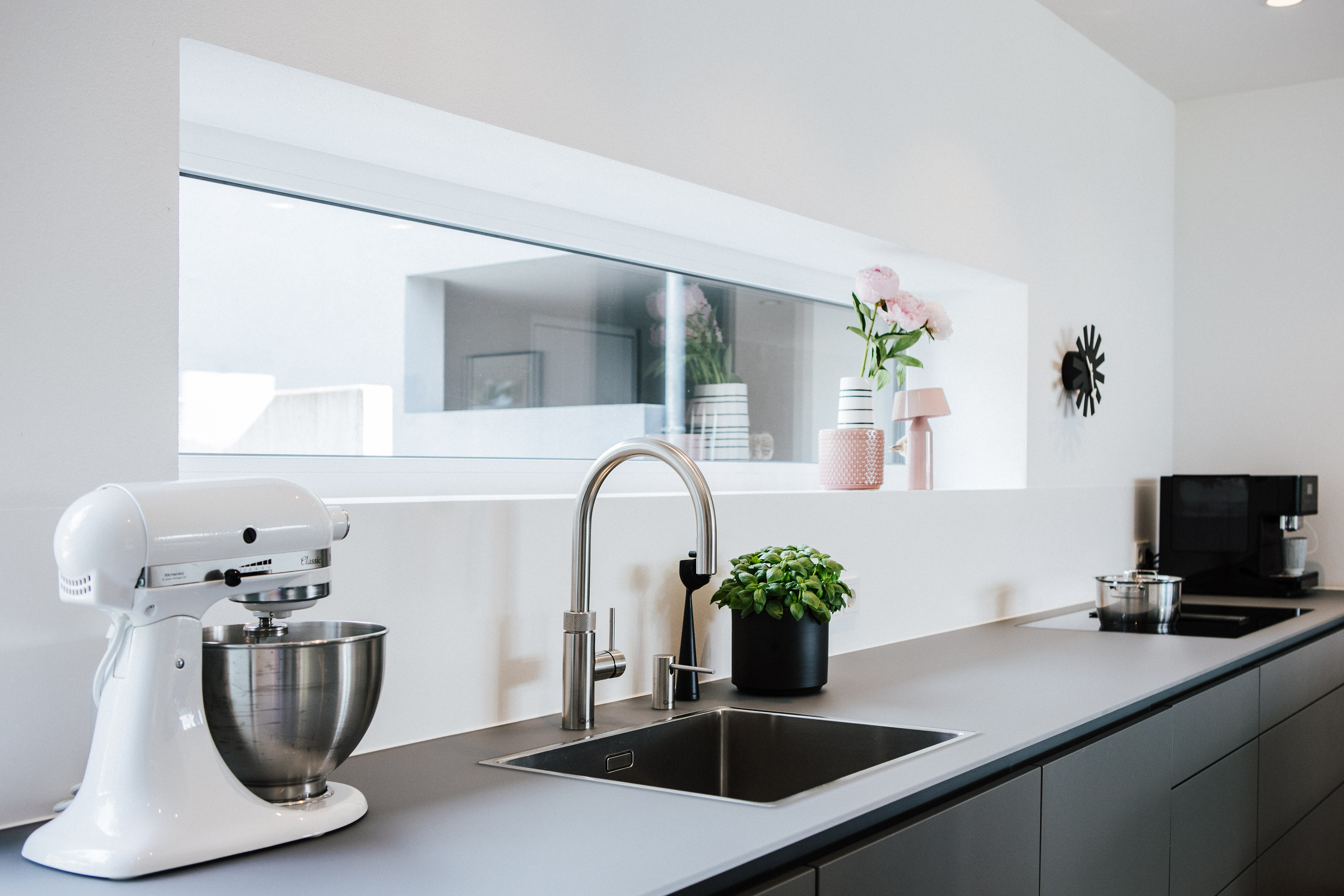 Trotz der Einbindung in eine Nische bleibt die Küche offen und großzügig – das durchdachte Layout maximiert den verfügbaren Raum und lässt zugleich Luft und Licht fließen. So entsteht eine einladende Atmosphäre, die sowohl Funktionalität als auch wohnliches Ambiente verbindet.
