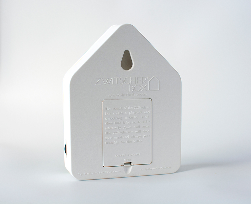 Die Zwitscherbox kann überall aufgestellt oder an die Wand gehängt werden. Das Zwitschern wird durch einen Bewegungsmelder aktiviert. Kommt kein neuer Impuls, blendet der Sound nach ca. zwei Minuten wieder aus. Mit dem kleinen Rädchen an der Seite kann die Lautstärke optimal angepasst, oder die Zwitscherbox ausgeschaltet werden. Betrieben wird die Zwitscherbox von drei handelsüblichen AA-Batterien.