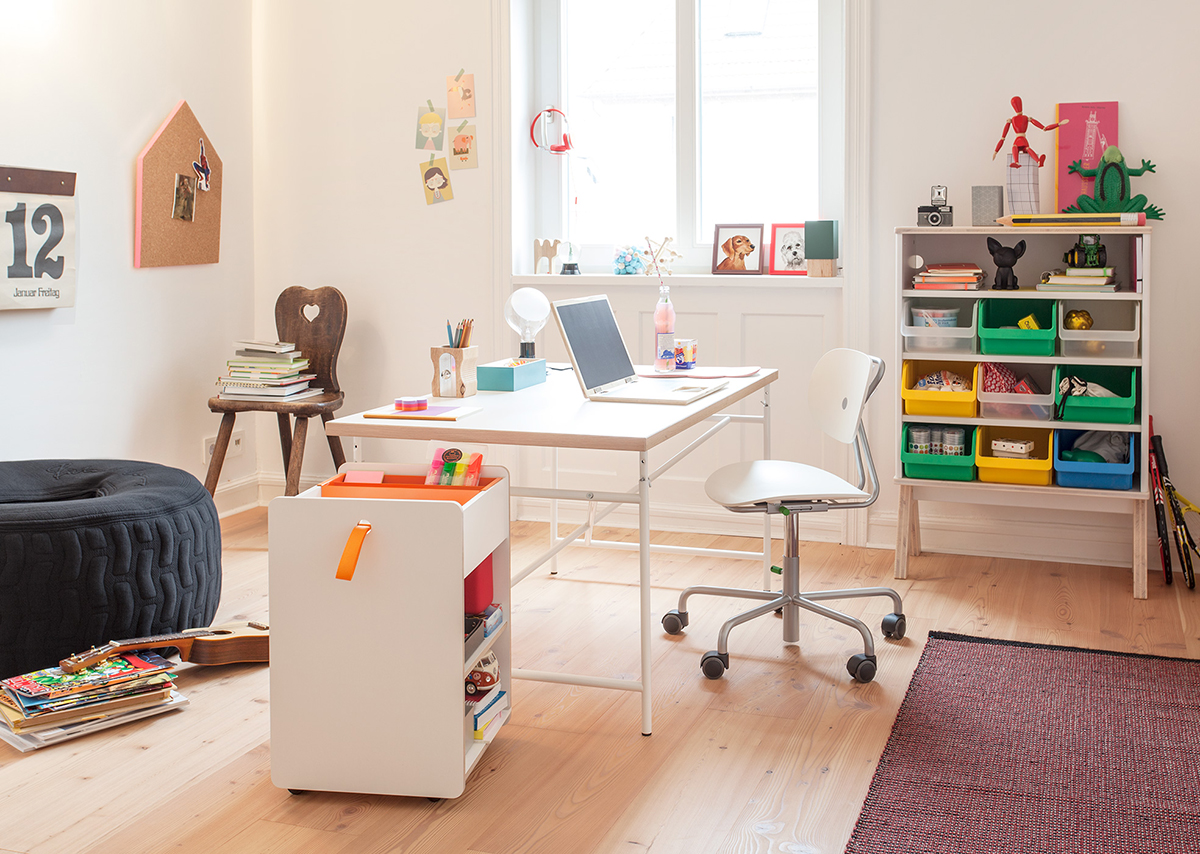 Eine Sitzgelegenheit mit Wachstumspotential – Drehstuhl Turtle hat eine verstellbare Sitz- und Rückenlehne und kann Kinder und Jugendlichen bis zu einer Körpergröße von 160 Zentimetern am Schreibtisch begleiten.