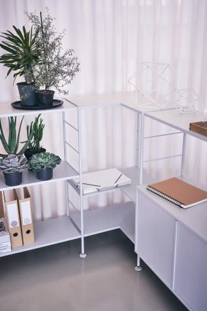 1954 entwarf Herbert Hirche das Regalsystem DHS10, das bis ins Detail mit funktionaler Einfachheit und Präzision überzeugt. Das Regal bietet unzählige Gestaltungsmöglichkeiten. Seit 2019 legt Richard Lampert diese Ikone wieder auf.