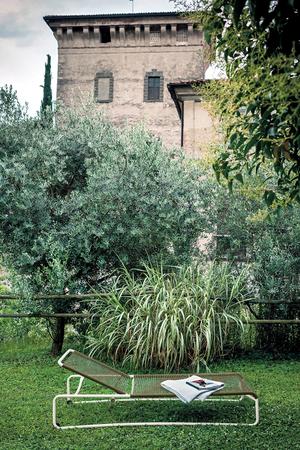 Die Struktur der HARP Sonnenliege besteht aus lackiertem Edelstahl für den Außenbereich und wird von Hand bearbeitet und geschweißt. Die Verseilung, die ebenfalls von Hand gefertigt wird, besteht aus Polyester- oder Acrylfäden mit einer Endbearbeitung aus Baumwolle, was der Liege eine besonders elegante Note verleiht.