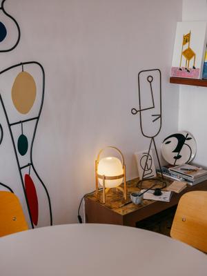 Wie eine abstrakte Laterne im japanisch angehauchten Stil wirkt die Komposition der Leuchte Cestita. Ihr handgefertigtes Gestell aus Pinienholz und der kugelförmige Glas-Diffusor ergeben ein harmonisches Gesamtbild. Dank einklappbarem Griff an der oberen Seite des Holzrahmens und einer Zuleitung von 1,5 Metern, lässt sich Cestita in einem angenehm großen Radius bewegen. Ihr Licht verteilt sich blendfrei in ihrer Umgebung und sorgt für wohlige Gemütlichkeit. Für ein robusteres Finish, ist die Leuchte auch mit einem Diffusor aus technischem Kunststoff erhältlich.