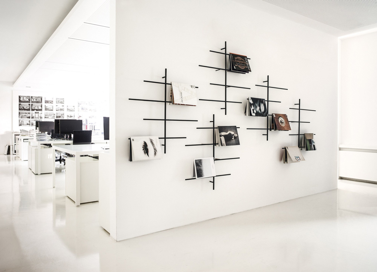Auf dem Zeitschriftenhalter Sketch lassen sich die Cover von Magazinen und Zeitschriften in Szene setzen. Statt wie bei herkömmlichen Magazinständern, können die Hefte über verschieden lange Metallstäbe arrangiert werden. Bis zu 8 Zeitschriften finden auf dem Design des Duos Markus Jehs und Jürgen Laub Platz. Das ist nicht nur praktisch, sondern auch sehr stylisch. Lässig und schlicht warten die Zeitungen nur darauf, abgenommen und angeschaut zu werden. Sogar im leeren Zustand erinnert der Sketch Magazinhalter fast schon an ein Kunstobjekt an der Wand.