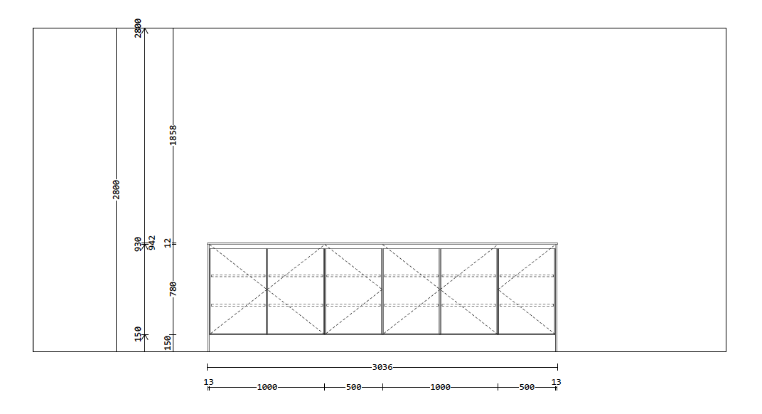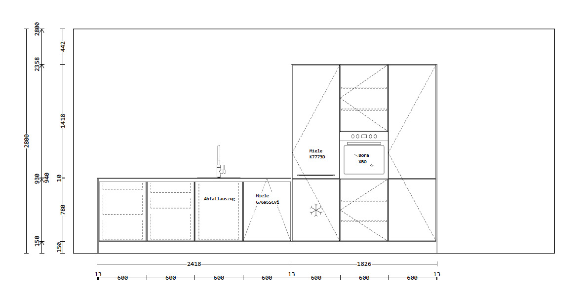 Wandzeile B 424,4 T 65 H 95 / 235,8cm