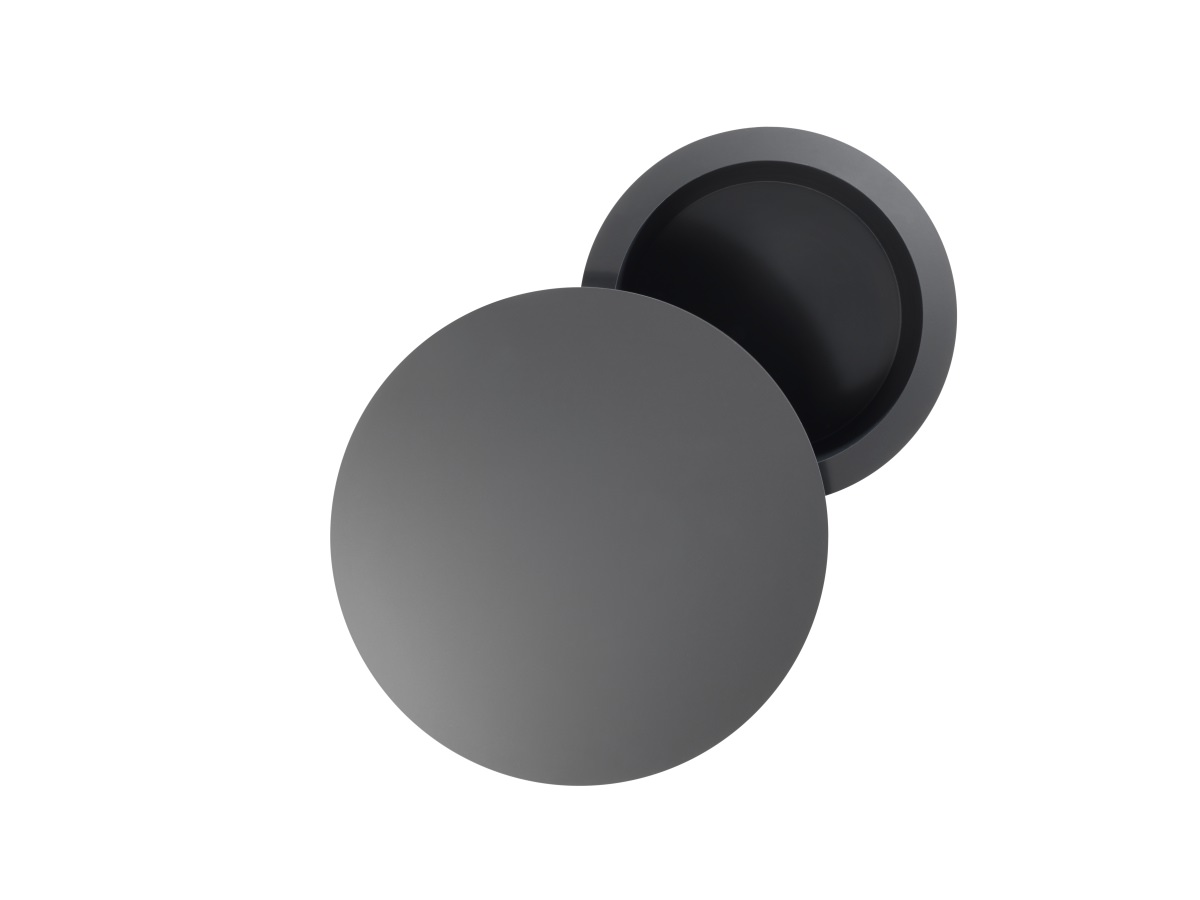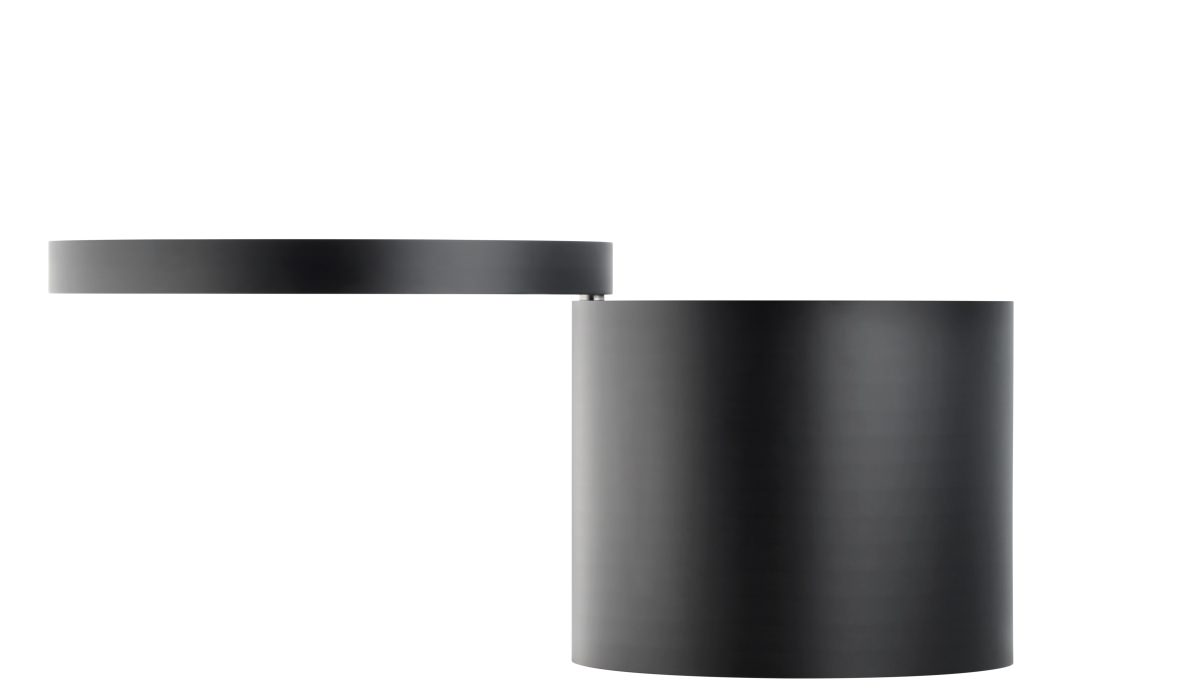 Der Große Bruder des Couchtisch K8A ist der K8B. Der lautlose Öffnungsmechanismus gibt einen Stauraum im inneren des Zylinders frei.