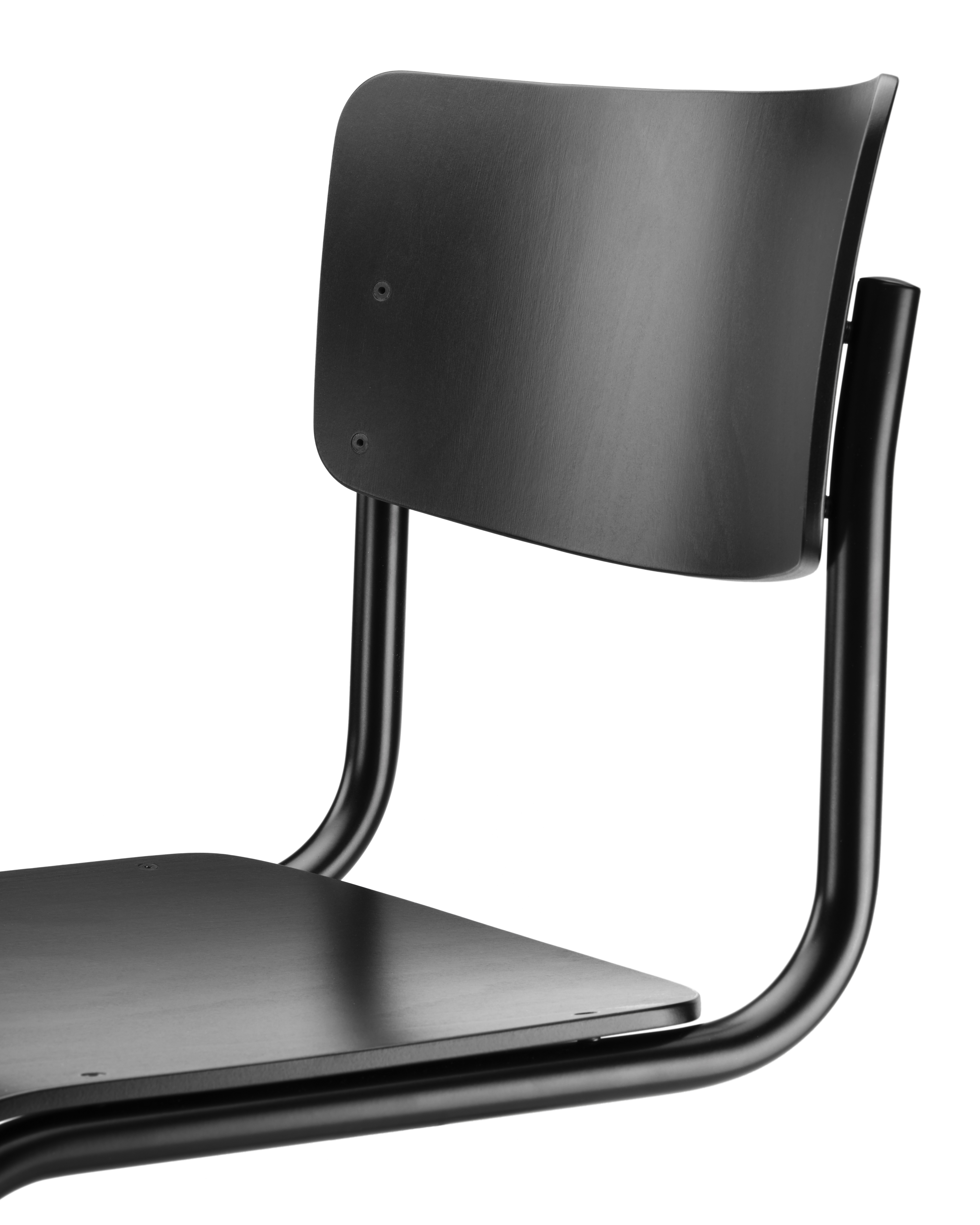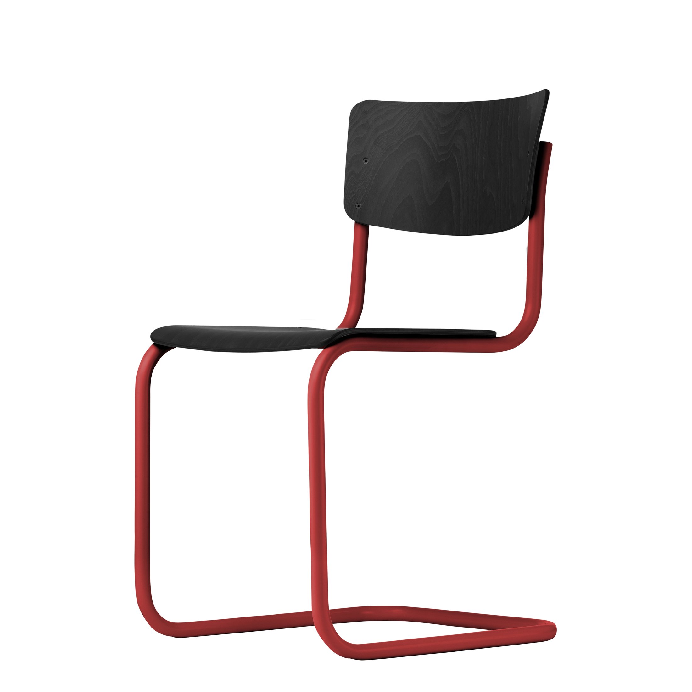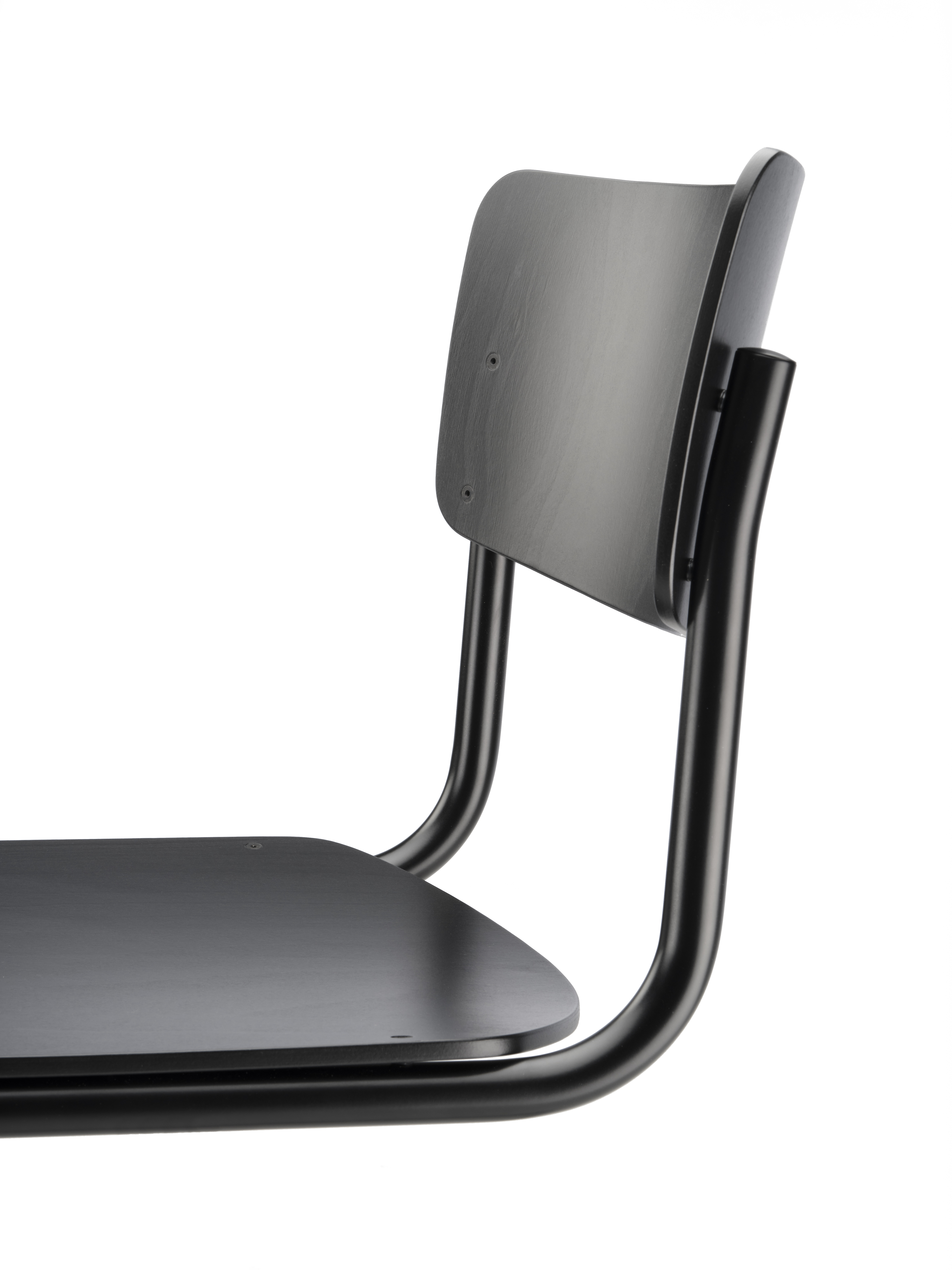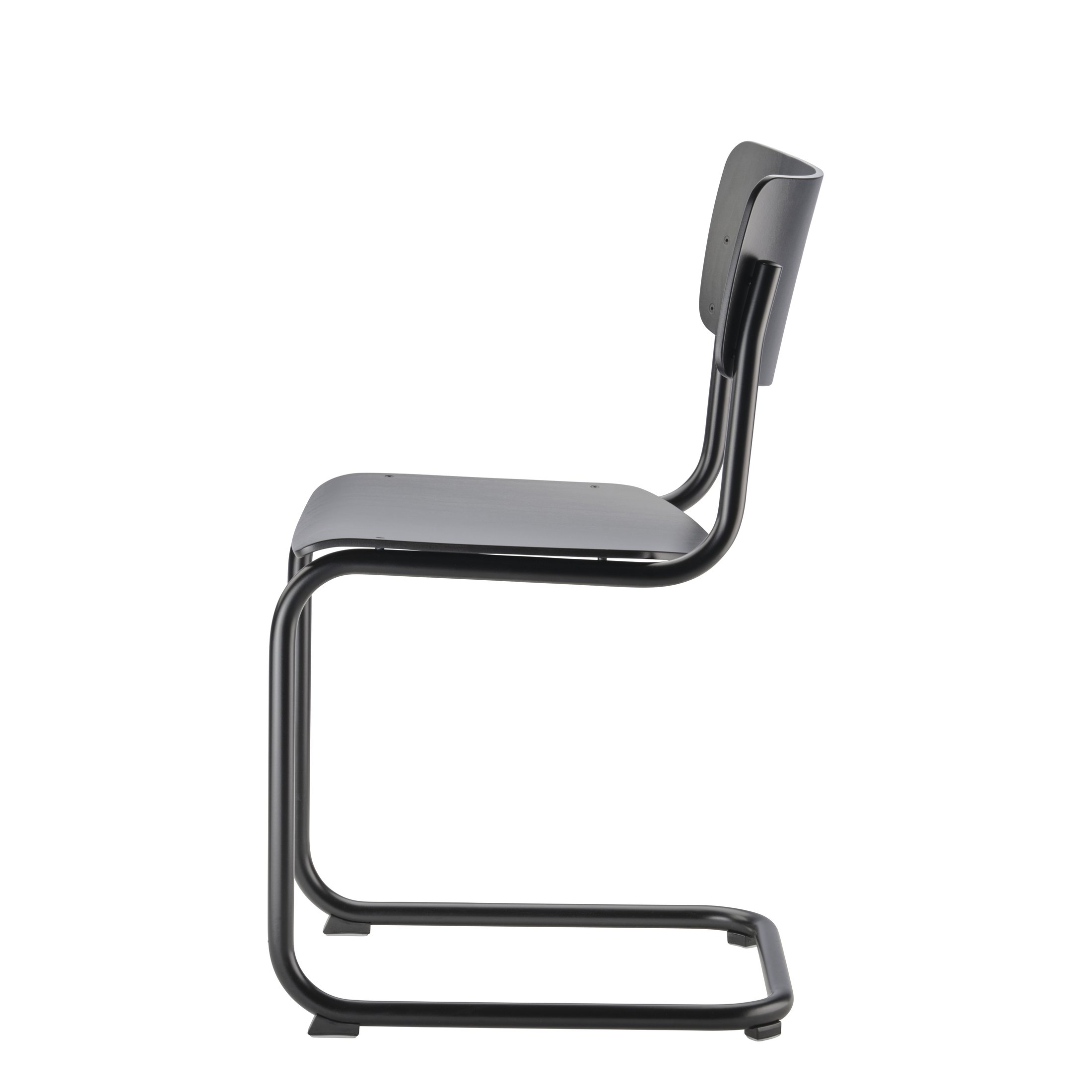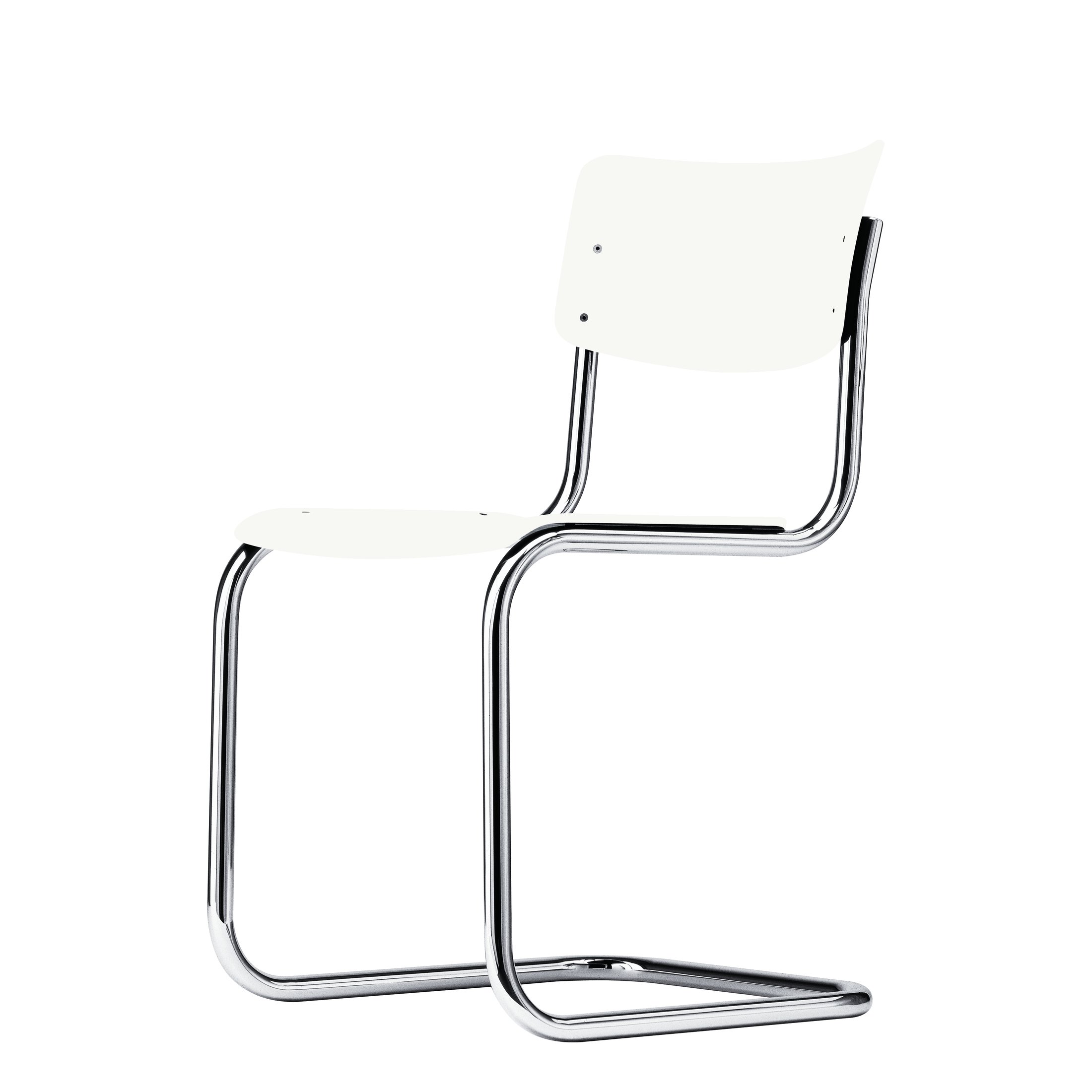 Beim S 43 kombinierte Mart Stam das Stahlrohr-Gestell mit Formholzschalen für Sitz und Rücken und schaffte damit eine absolute Reduktion. Durch den bequemen Schwingeffekt des Gestells kann man auf eine Polsterung verzichten.