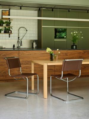 Der Tisch 1140 punktet durch seine Vielseitigkeit, Funktionalität und seine elegante Schlichtheit. Kennzeichnende Merkmale sind die abgerundeten Tischbeine aus massivem Eichenholz sowie die dezenten Verbindungselemente an den Ecken der Tischplatte. Zudem überzeugt der Tisch 1140 auch durch seine Nachhaltigkeit: Zur Herstellung wurde der Materialeinsatz reduziert und FSC-zertifiziertes Holz verwendet.