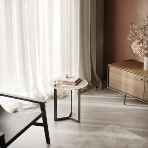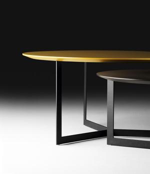 Vielseitig einsetzbar, dienen sie als Couch-, Nacht- oder Beistelltisch. Die Metallbeine sind in Grafit gehalten, während die Tischplatten in Nussbaum, Eiche oder farbiger Lackierung erhältlich sind.