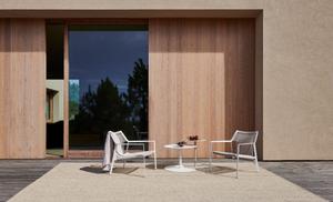 Der Nodi Loungesessel von Tribu zeichnet sich durch sein klares, luftiges Design aus. Er ist aus wetterfestem Canax®-Seil gefertigt, das kunstvoll über einen stabilen Rahmen aus pulverbeschichtetem Edelstahl gespannt ist. Die ergonomisch geformten Armlehnen folgen den Konturen der Arme und bieten so erhöhten Komfort. Der Stuhl vereint schlanke Ästhetik mit funktionalen Merkmalen und eignet sich hervorragend für den Einsatz im Außenbereich. Zusätzlich ist auch ein Sitzkissen in verschiedenen Stoffen erhältlich.