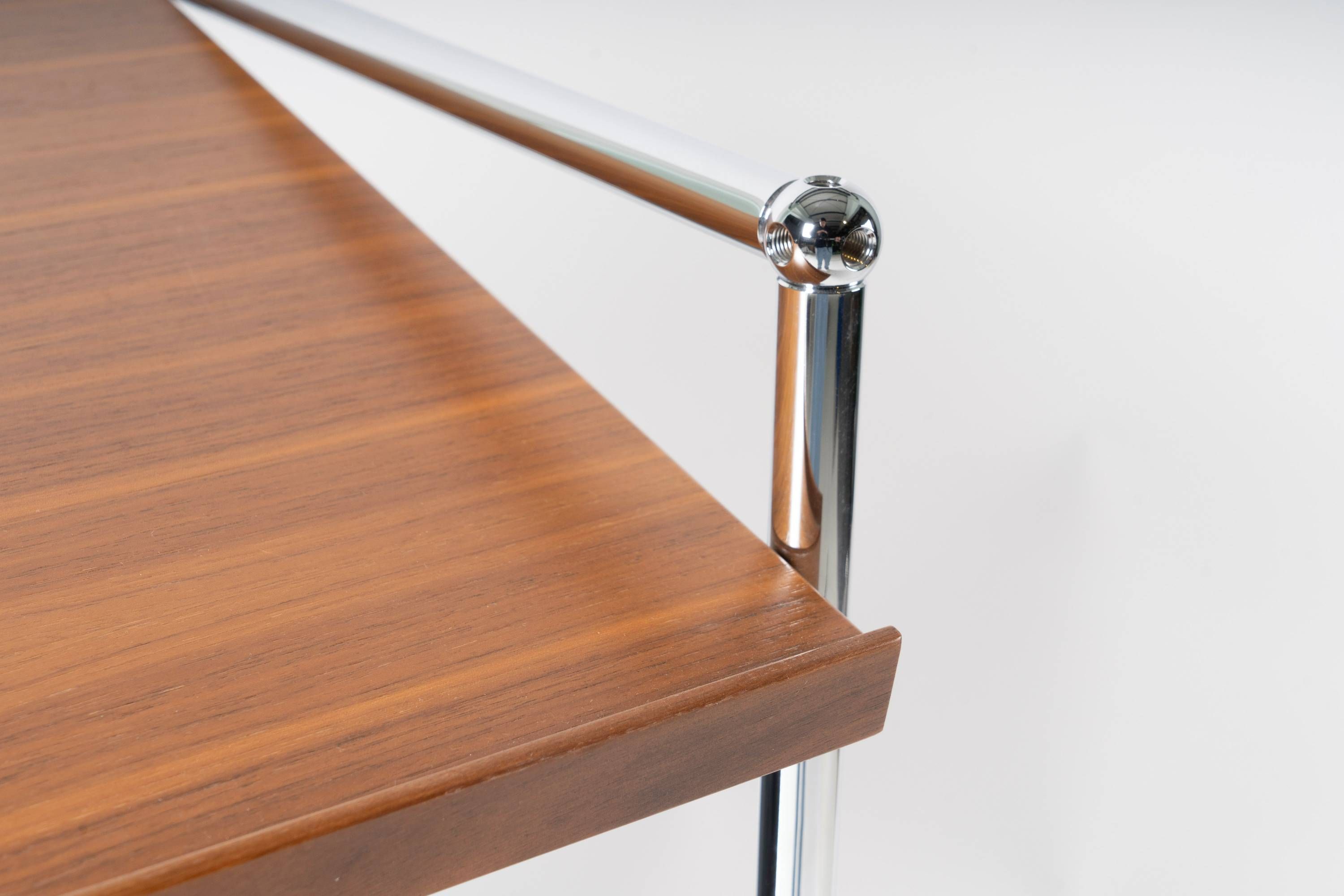 Metall in mittelgrau, Ablage in Nussbaum,