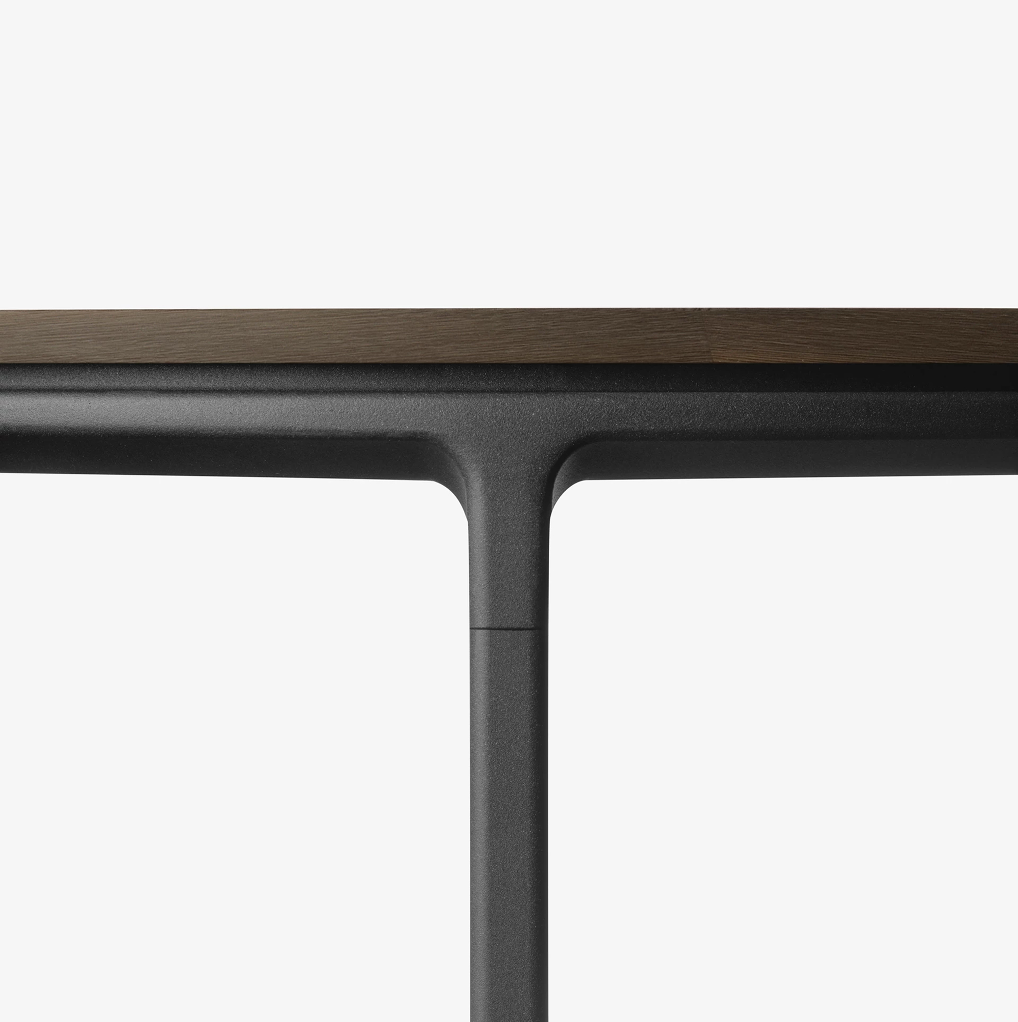 Das äußerst robuste Aluminiumgestell in Kombination mit der dreiteiligen Holzplatte verleiht dem Beistelltisch einen industriellen Touch und ästhetische Zeitlosigkeit.