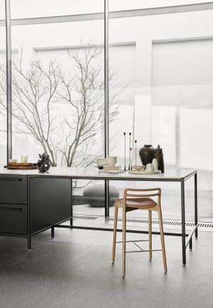 Typisch Vipp: Jedes Detail ist durchdacht – von der angenehmen Fußstütze bis zu den sanft gerundeten Kanten. Der Counterstuhl ist nicht nur ein funktionales Möbelstück, sondern ein Statement für langlebige Qualität und skandinavische Klarheit.