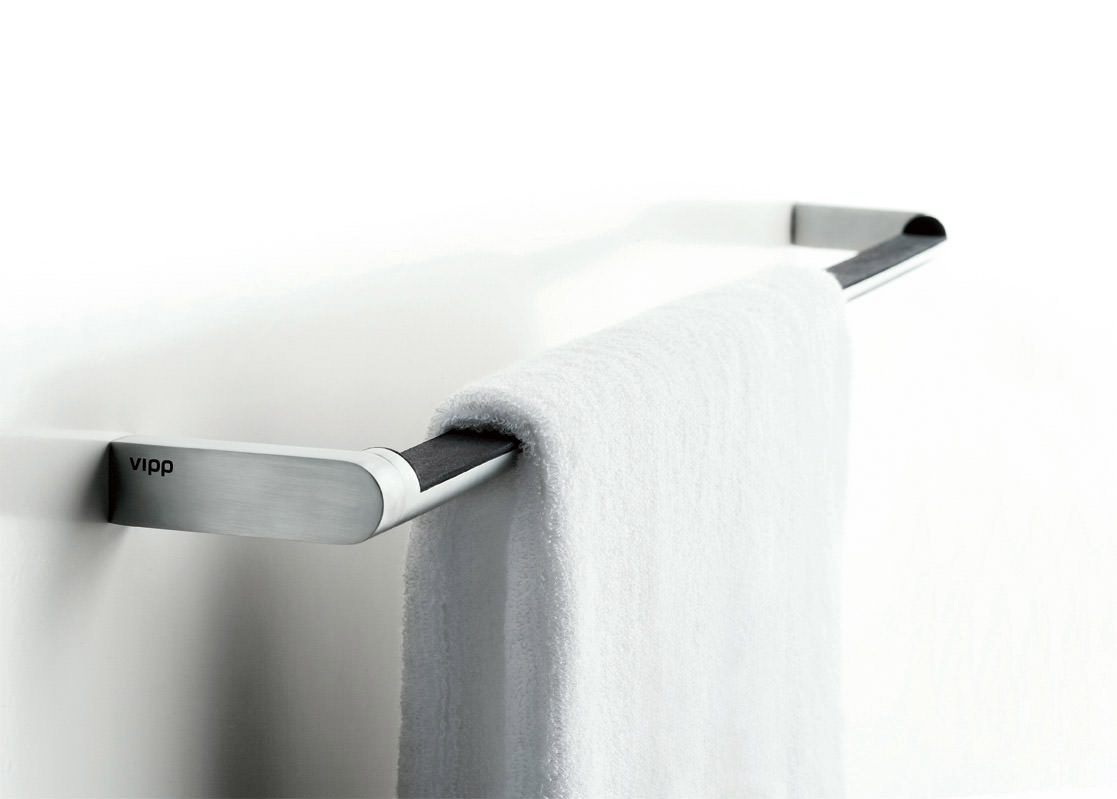 Im Vordergrund der Vipp Produkte steht vor allem eine benutzerfreundliche Funktion. Die Handtuchstange garantiert mit einer Gummivertiefung eine glatte und zugleich rutschfeste Oberfläche.