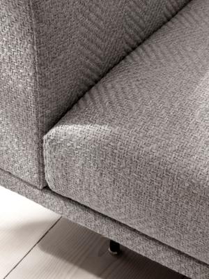 Das Vipp Loft Sofa ist aus einer der zwei Vipp Sofa-Serien. Das Sofa Loft hat eine breite, kantige Form mit einer Holz-Stahl-Konstruktion, die von einem schlanken Rahmen aus pulverbeschichtetem Stahl getragen wird. Ein Kissen pro Einheit ist im Lieferumfang enthalten. Diese Version ist eine 3-Sitzer-Konfiguration. Das Sofa Vipp Loft setzt auf Beständigkeit und nicht auf verblasste Trends. Es besteht aus einem massiven, pulverbeschichteten Aluminiumrahmen und hochwertigen Textilbezügen, die in einer sorgfältig ausgewählten und modernen Farbpalette erhältlich sind.