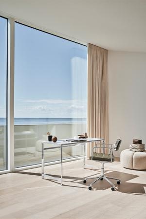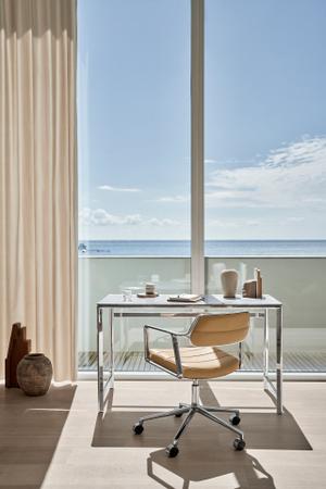 Durch seine kompakten Maße eignet sich der Studio Desk Vipp 430 sowohl für kleine Räume als auch für großzügigere Büros, wo er durch seine schlichte Präsenz beeindruckt. Der Schreibtisch harmoniert perfekt mit dem Vipp 453 Swivel+ Drehstuhl, der durch seine ergonomischen Eigenschaften und das klare Design den funktionalen Anspruch ergänzt.