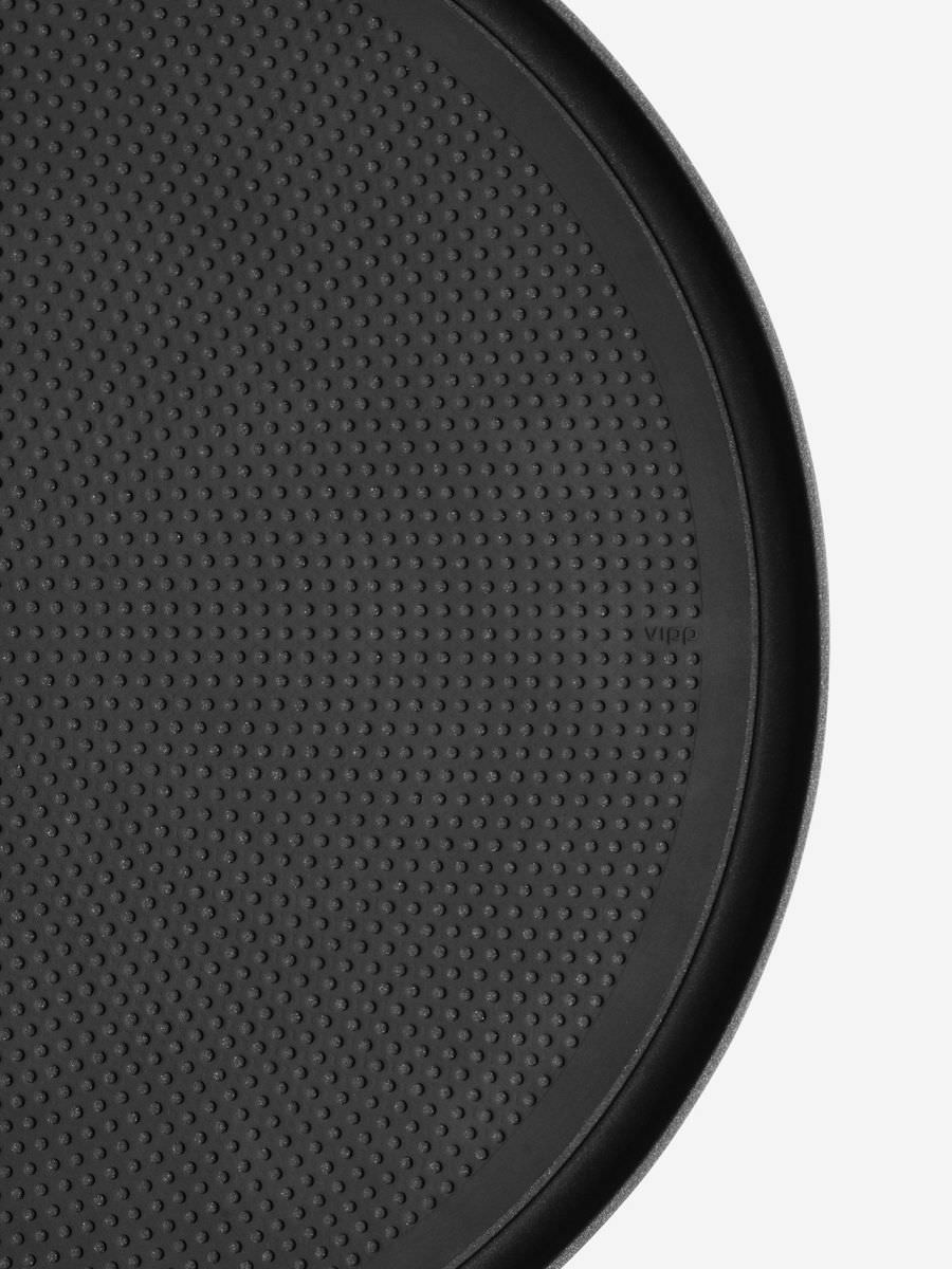 Kreisförmige Erhöhungen am Boden des Vipp Tabletts sorgen für eine rutschfeste Oberfläche und nehmen das Kreismuster in der herausnehmbaren Matte dieses kleinen Helfers wieder auf