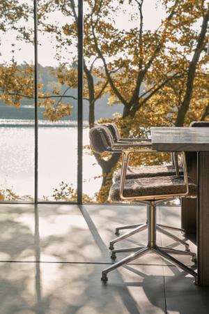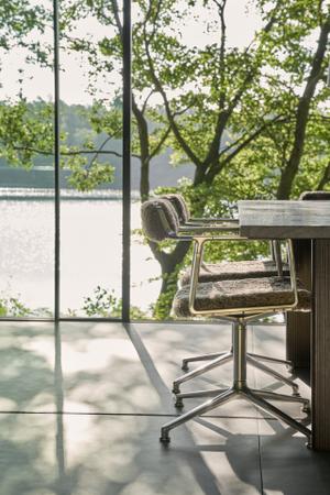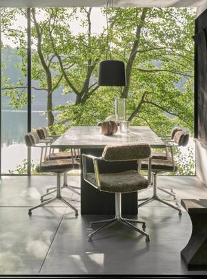Der Cabin Square Tisch Vipp 496 bietet großzügigen Platz für bis zu acht Personen, perfekt für gesellige Zusammenkünfte oder Familienessen. Jeder Tisch ist ein Unikat, da die Kalkstein-Tischplatte, die aus dem Burgund in Frankreich stammt, ein Naturprodukt ist. Sie variiert bei jedem Tisch in Farbgebung und Struktur. Der hellgraue Stein mit subtilen Nuancen von Braun präsentiert eine charakteristische Oberfläche, die die natürliche Schönheit des Materials hervorhebt.