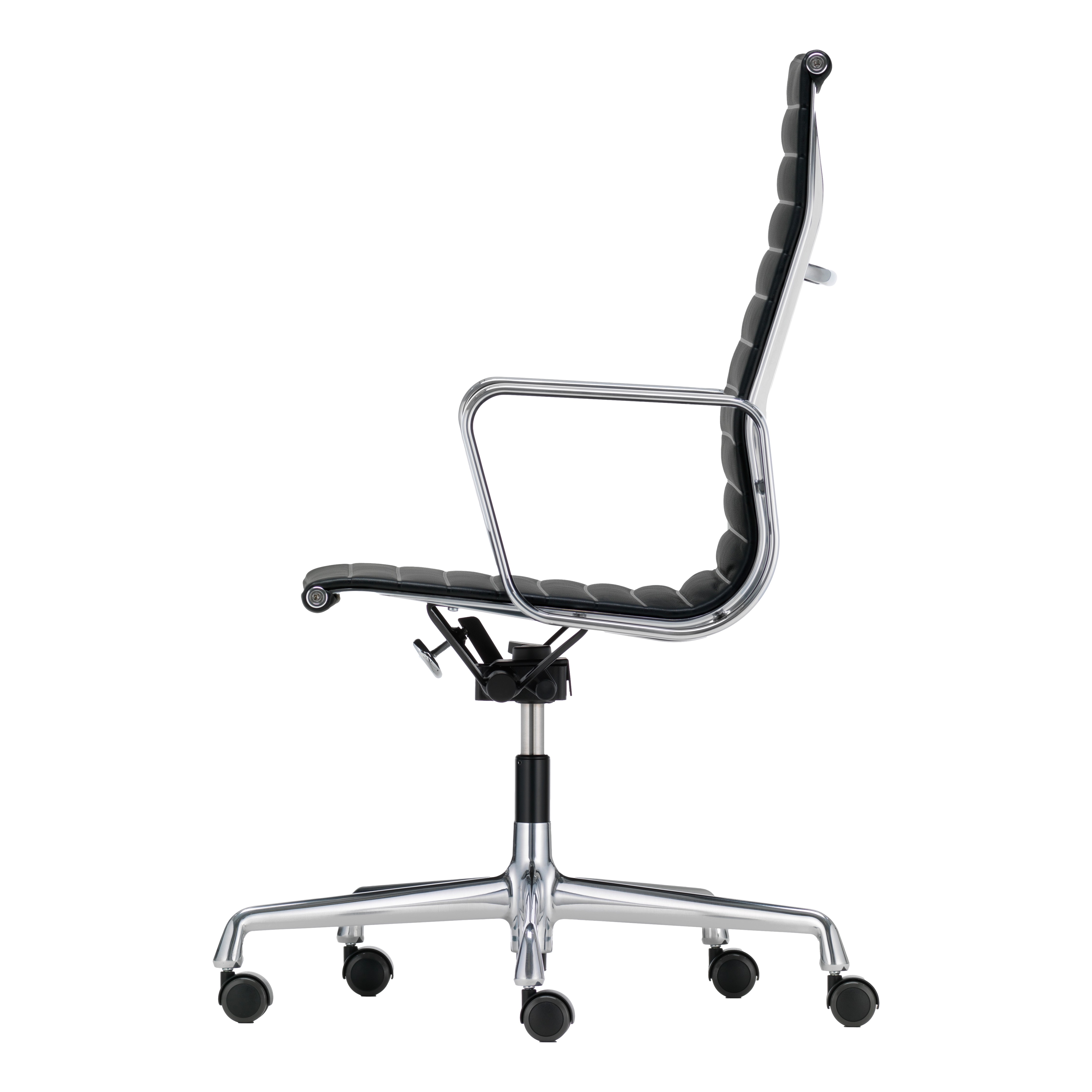 Der Klassiker EA 119 aus dem Jahre 1958 mit hoher Rückenlehne gehört wie das niedrige Modell EA 117 zu den Arbeitsstühlen aus der Aluminium Group von Charles und Ray Eames.