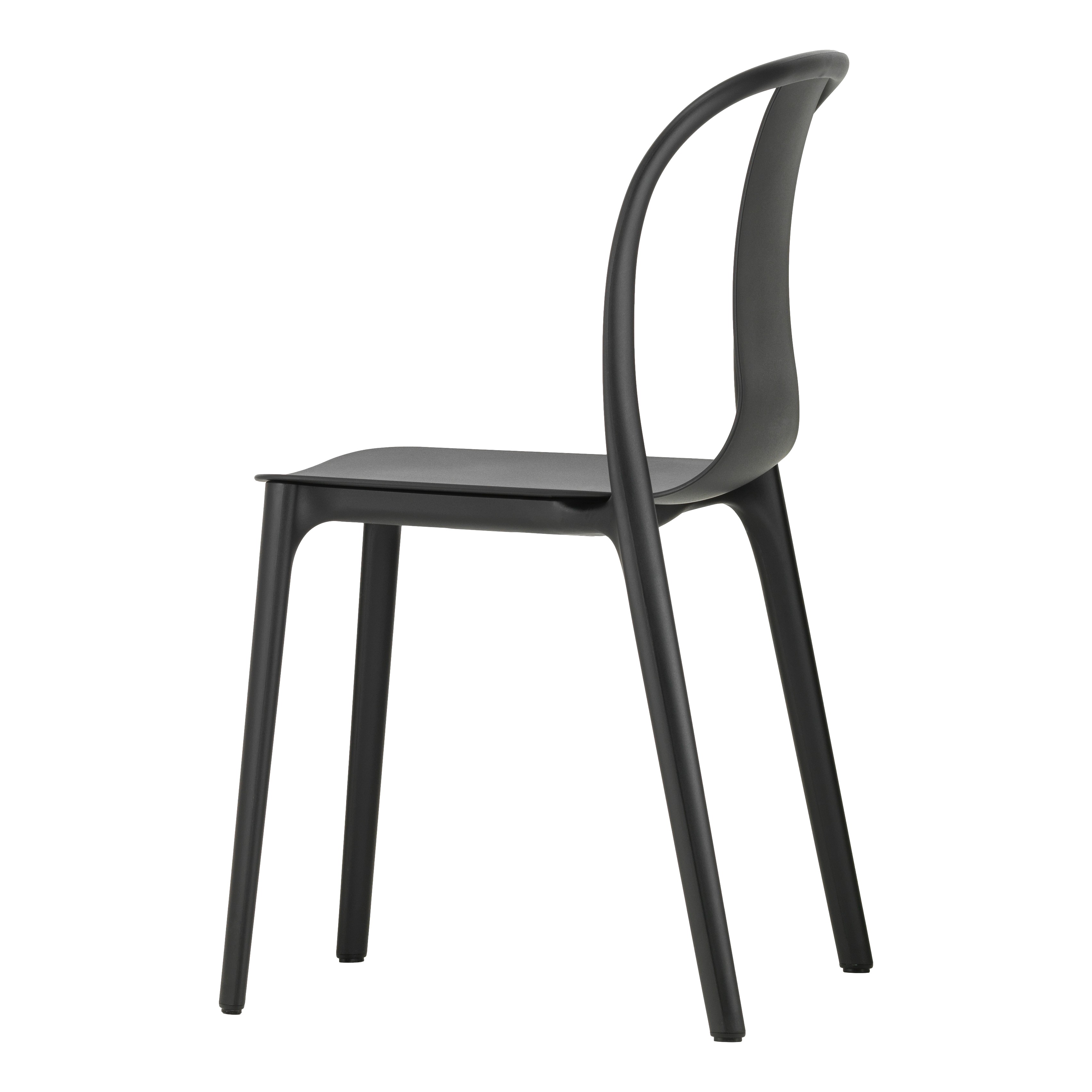 Der Belleville Chair besteht aus zwei Hauptkomponenten – einer Sitzschale und einer schlanken Rahmenstruktur aus Kunststoff. Die Schale, die sich von einem breiten Sitz zu einer schmalen Rückenlehne verjüngt, prägt die Identität des eleganten Stuhls.