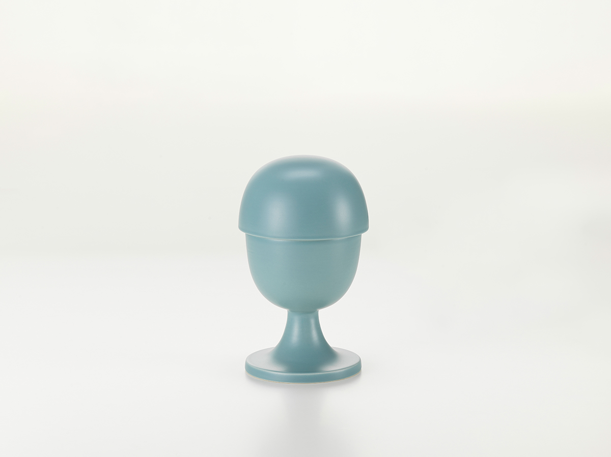Als Alexander Girard 1952 die verspielten Behälter entwarf, waren sie aus Holz und wurden gedrechselt. Nun werden sie aus Keramik gearbeitet und sind handgefärbt. Geschaffen, um Dinge des Alltags zu verbergen oder eben doch hervorzuheben.