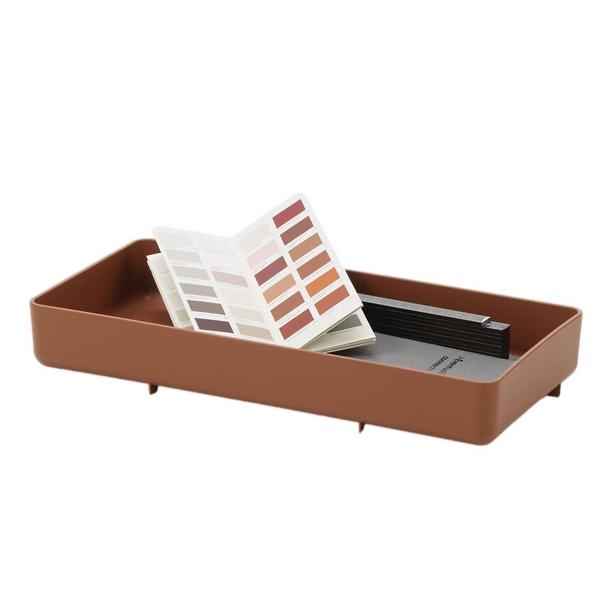 Passend zum Hocker Chap hat Konstantin Grcic ein Tray entworfen, dass solo genutzt werden kann. Im Hocker Chap befindet sich aber auch eine integrierte Halterung für die Trays. So werden bleiben Hocker und das Tablett für Arbeitsutensilien mit zusammen.