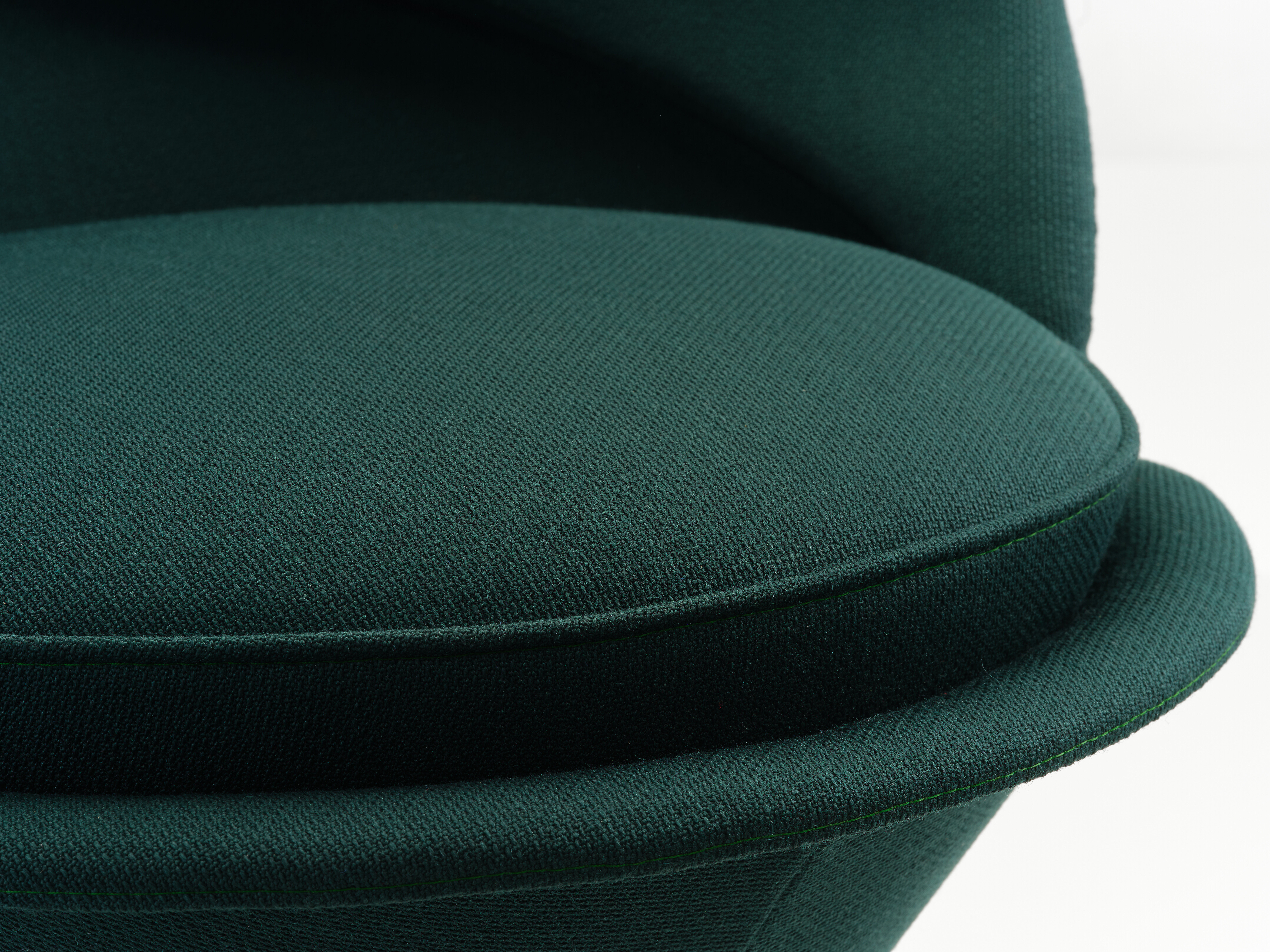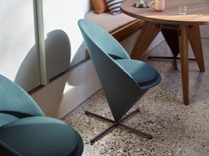 Durch seine kompakte Geometrie integriert sich der Cone Chair selbstverständlich in unterschiedliche Raumkonzepte. Er setzt einen bewussten Akzent, ohne dominant zu wirken. Verschiedene Bezugsstoffe und Farbvarianten ermöglichen eine präzise Abstimmung auf Architektur, Materialität und Nutzung.