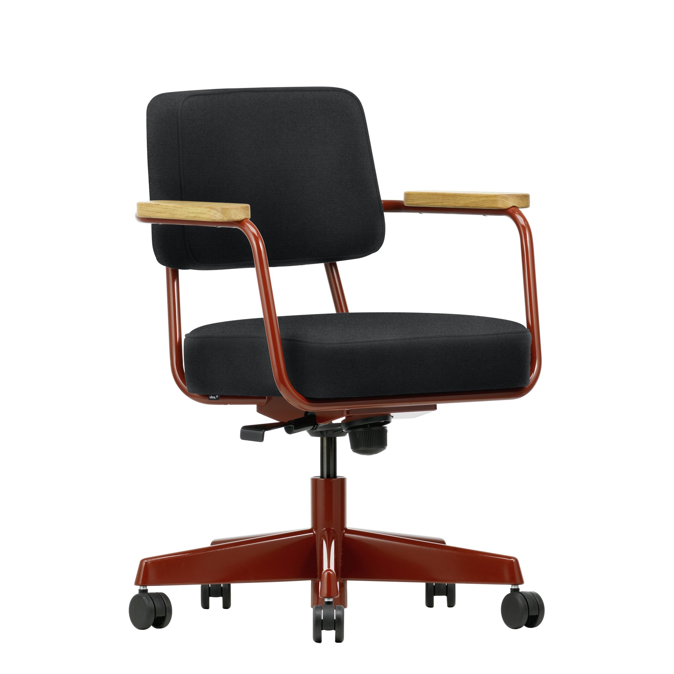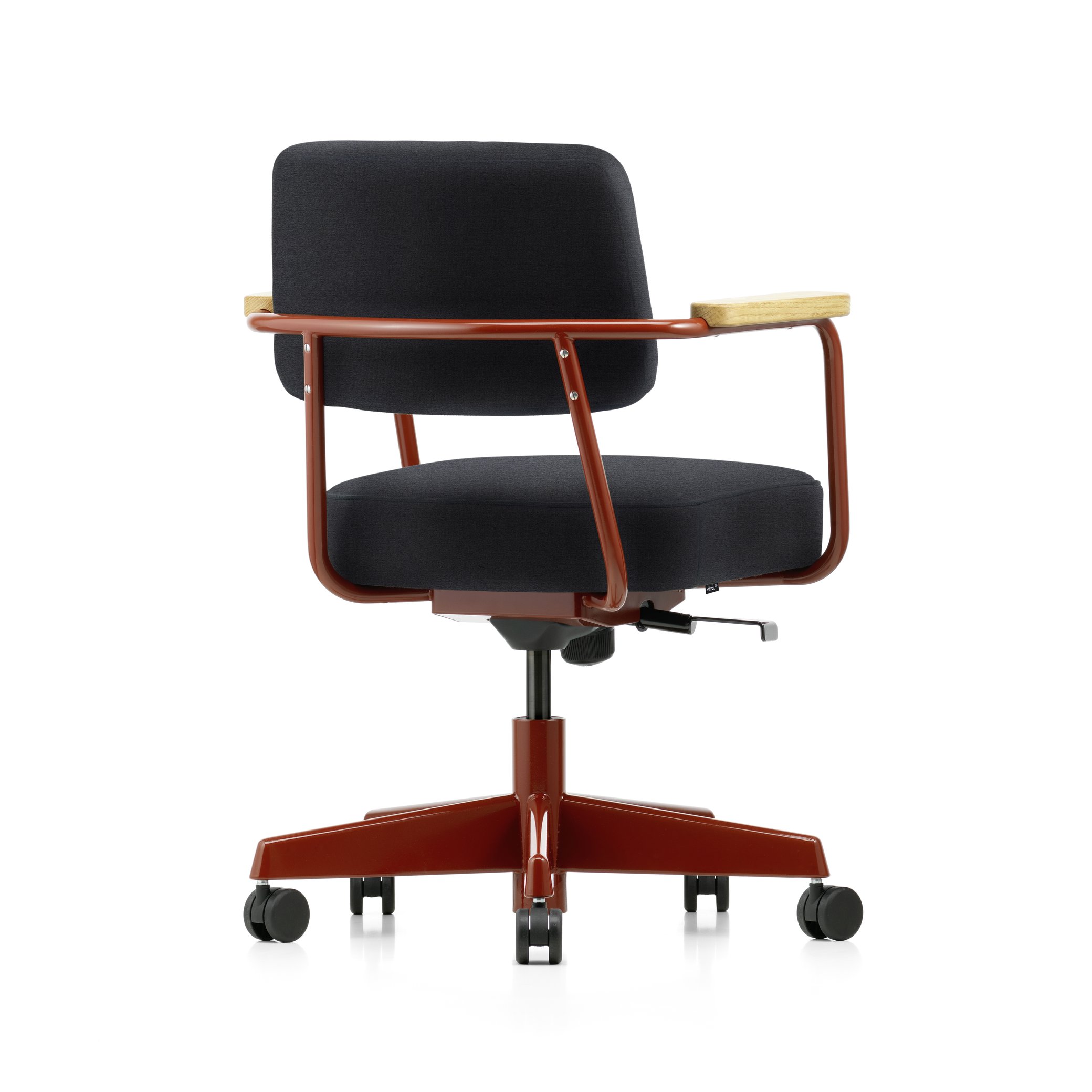 Der drehbare Fauteuil Direction Pivotant von 1951 mit seinen voluminösen Polsterkissen ist ein typischer Jean Prouvé, der bei seinen Entwürfen immer der Funktion gefolgt ist.