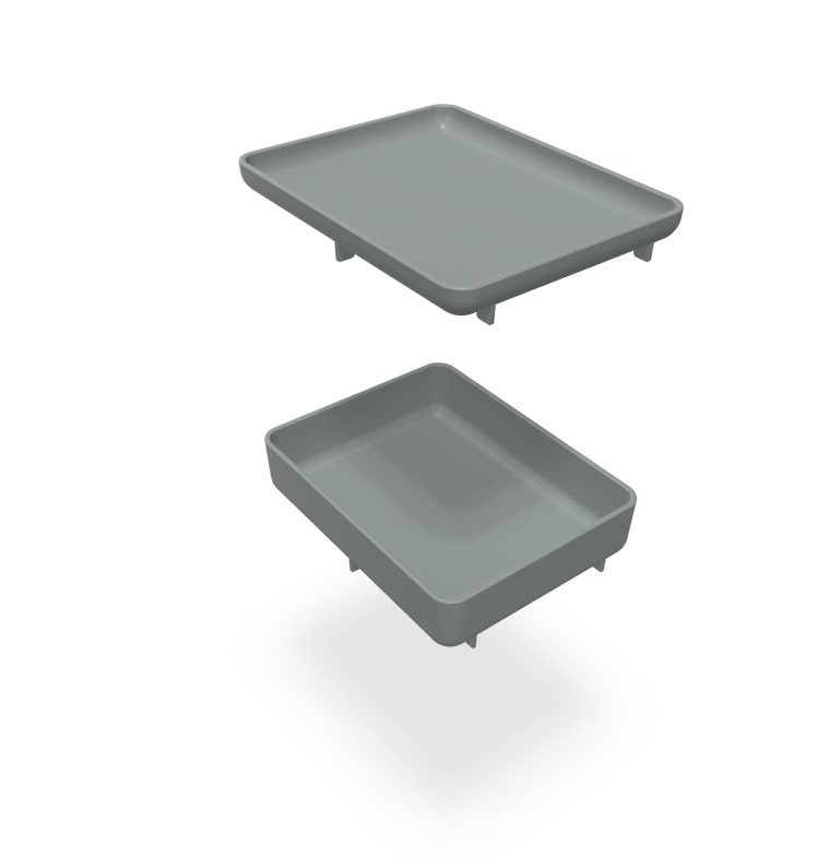 Das Drop Box Tray Set wurde für die Drop- und Locker Boxen konzipiert. Mit einem Klick wird es auf den Ebenen an den Querverbindungen befestigt. So sind Kleinteile immer schnell im Zugriff.