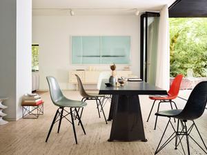 Durch verbesserte Verfahren bei der Produktion dieser besonderen Stühle konnte Vitra die Produktion der Eames Fiberglass Side Chairs wieder aufnehmen. Durch das Fiberglas, das ursprünglich für militärische Zwecke verwendet wurde, erhält das Traditionsmodell einen lebendigen Look, da die Glasfasern auf der Sitzschale zu sehen sind. Durch die organische Form und die besonderen Materialen wird der Fiberglass Chair zu jedermanns Liebling.
