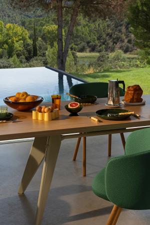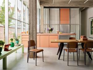 Der EM Table von Jean Prouvé ist durch seine Konstruktion geprägt, seine Ästhetik illustriert den Kräfteverlauf und die statischen Zusammenhänge. Mit der Auswahl lässt sich für jedes Esszimmer der passende EM Table finden.