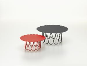 Vitra hat den Flower Table in enger Zusammenarbeit mit der Familie Girard zu einem Serienprodukt aus pulverbeschichtetem Stahl weiterentwickelt. Er ist in verschiedenen Farbausführungen erhältlich und kann auch im Freien verwendet werden.