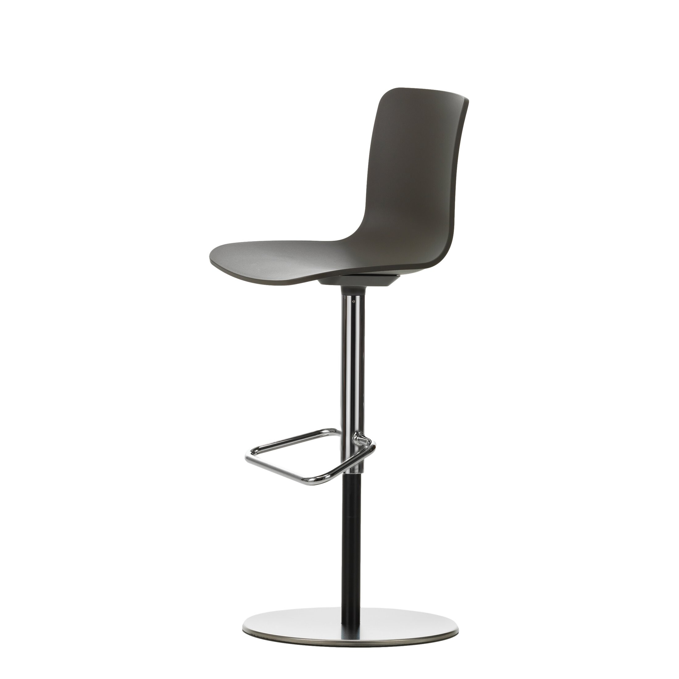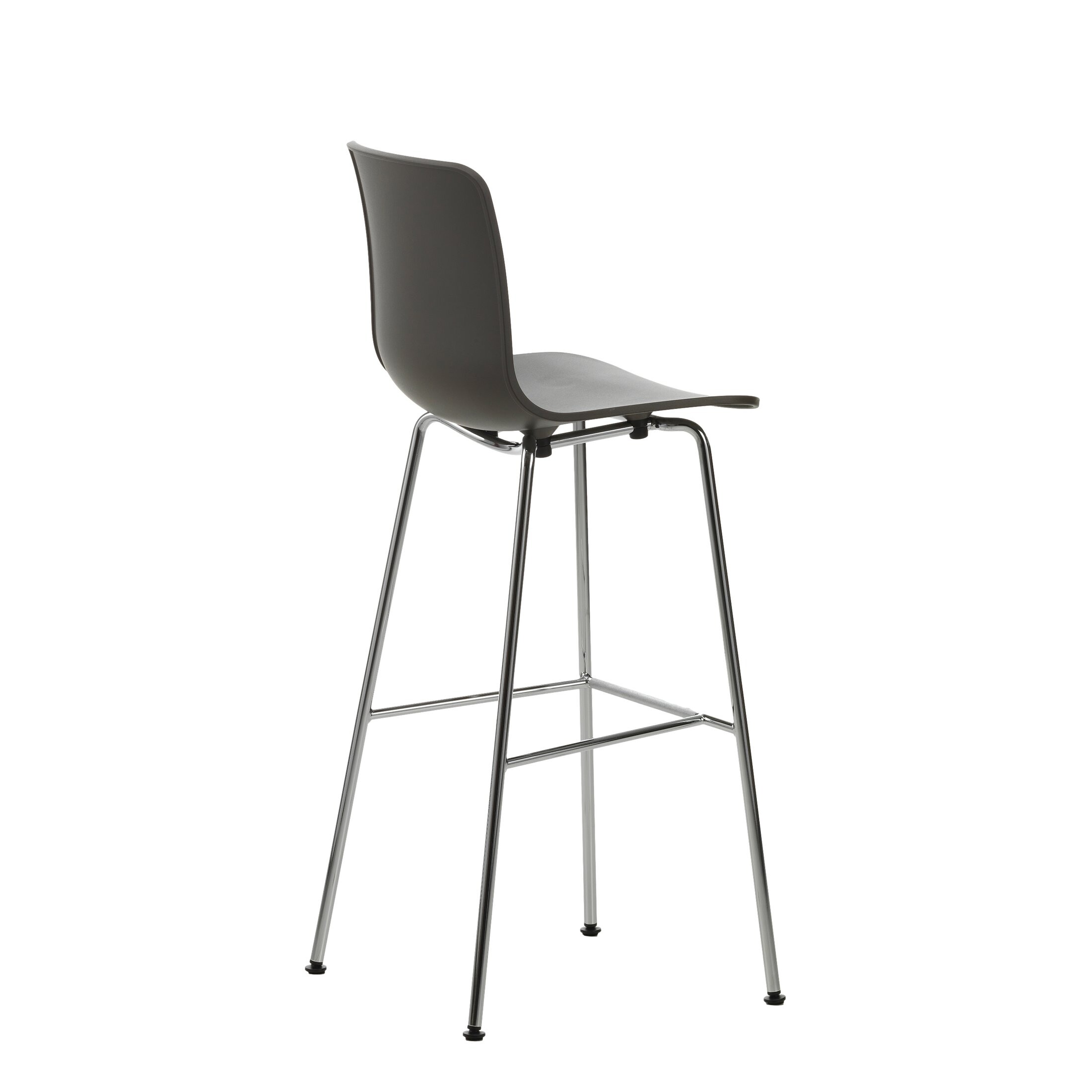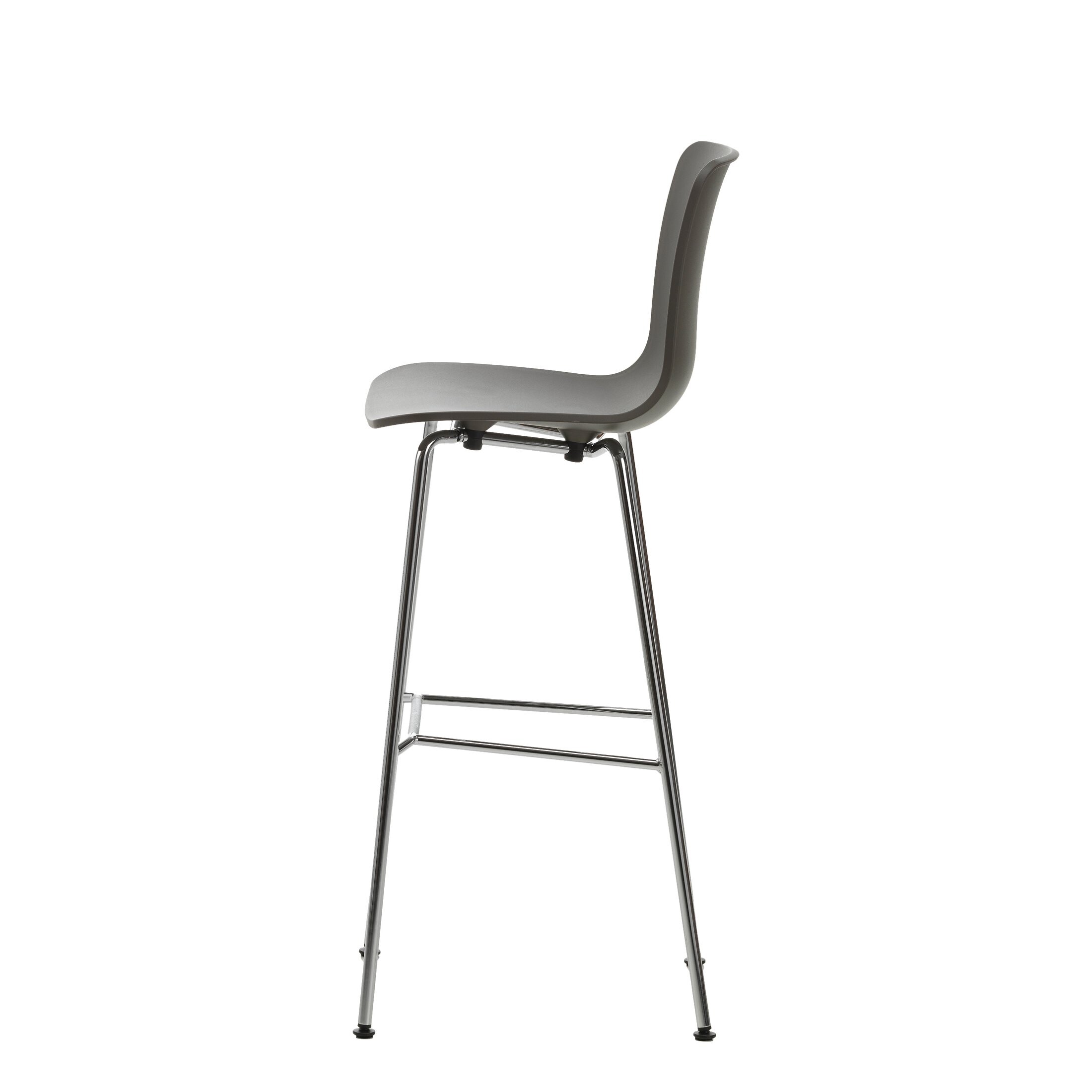 - Gestell Barstool: höhenverstellbares Stahlrohr-Untergestell, Gasfeder pulverbeschichtet basic dark, Verbindungsrohr und Fussstütze Stahlrohr verchromt mit Rutschhemmung, Verbindung Sitzschale-Untergestell in Aluminiumdruckguss pulverbeschichtet dim grey, Fussplatte aus Stahl mit Abdeckblech aus gebürstetem Edelstahl (matt); auf Filzronde